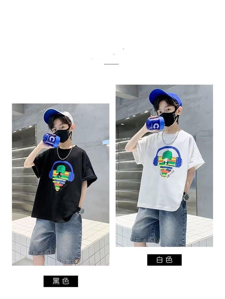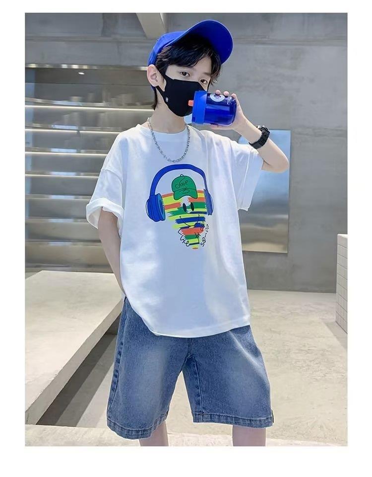 남아용 티셔츠 반팔 여름 2025 신상 아동용 흰색 루즈핏 반팔 중대형 아동용 여름옷 유행 상의스토어 가기