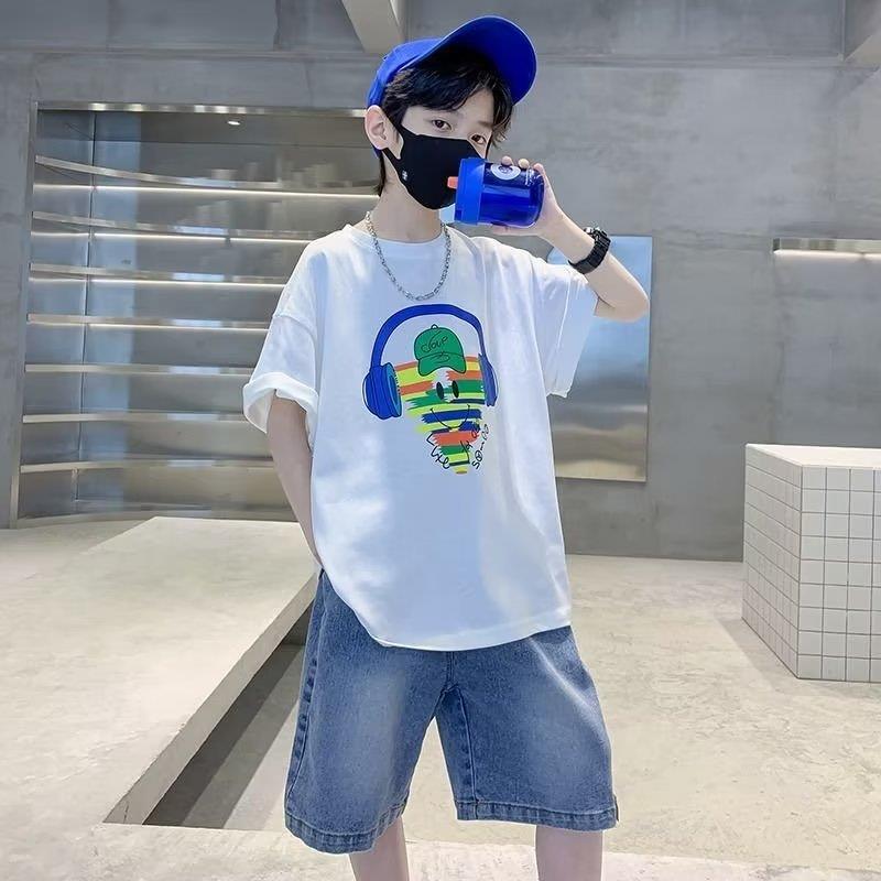 남아용 티셔츠 반팔 여름 2025 신상 아동용 흰색 루즈핏 반팔 중대형 아동용 여름옷 유행 상의