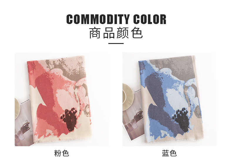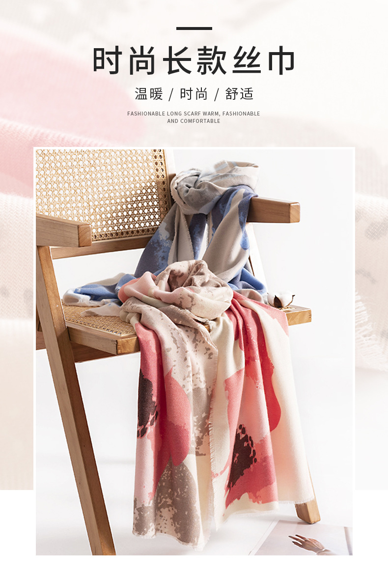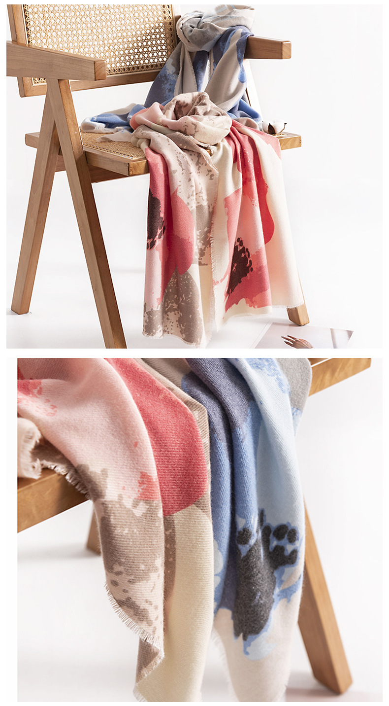 프린트 캐시미어 스카프 여성용 고급 식물 꽃 따뜻한 목도리 패션 통근 목 보호 방한 스카프스토어 가기