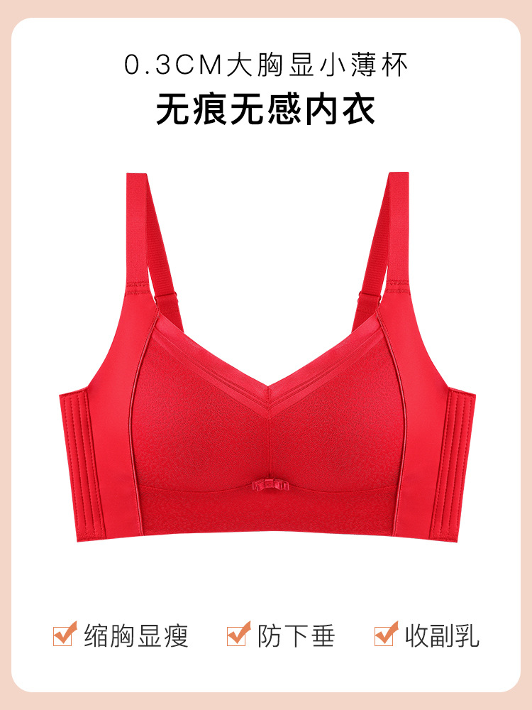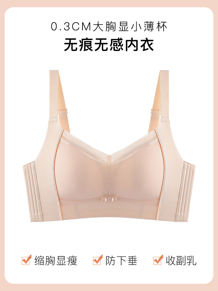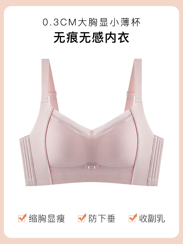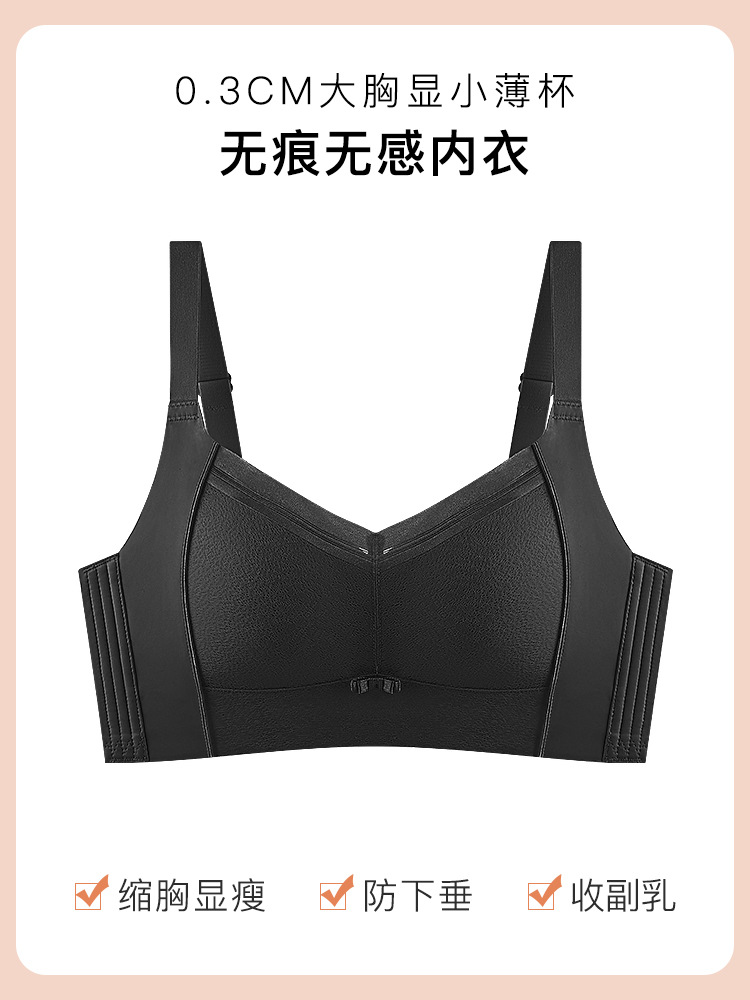 원래 광택 원활한 큰 가슴 작은 라텍스 속옷 여성용 얇은 스틸 링 조절 가능한 푸시 업 브라