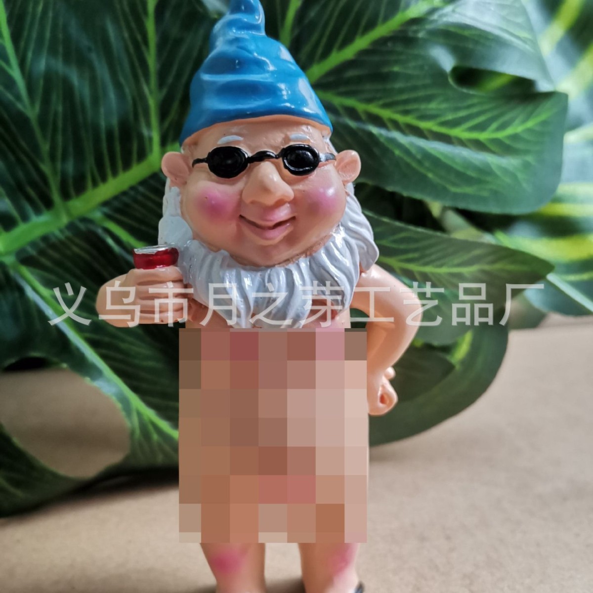 국경 간 정원 장난 꾸러기 난쟁이 벌거 벗은 난쟁이 동상 재미 정원 장식 수지 장식품스토어 가기