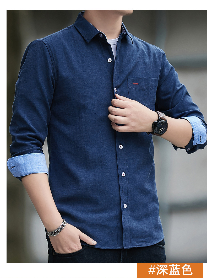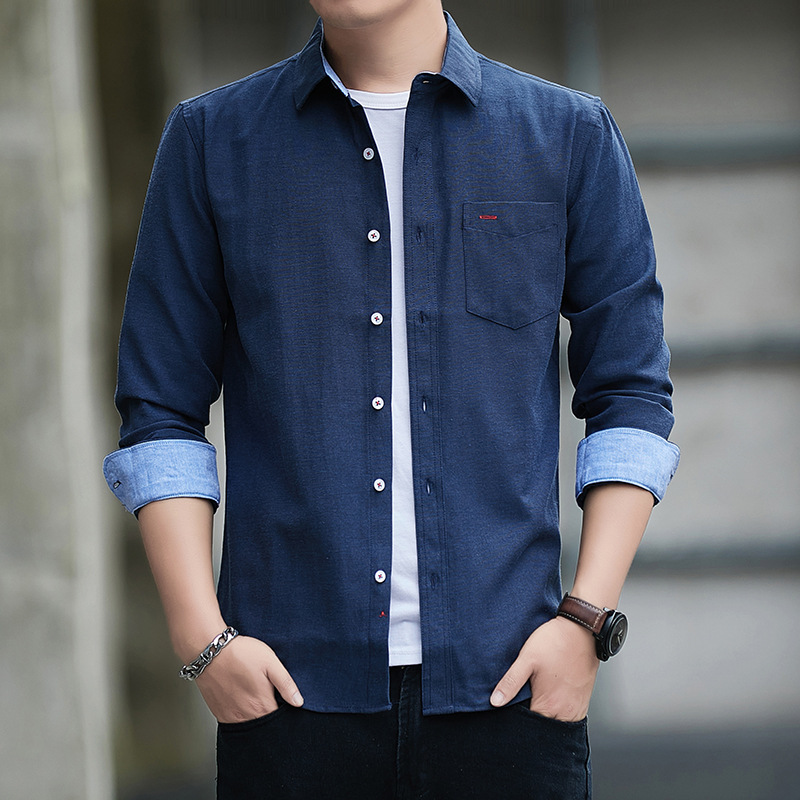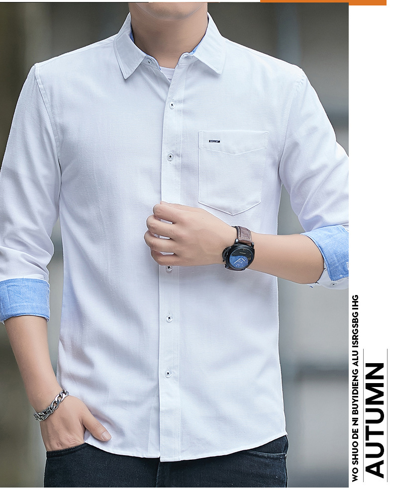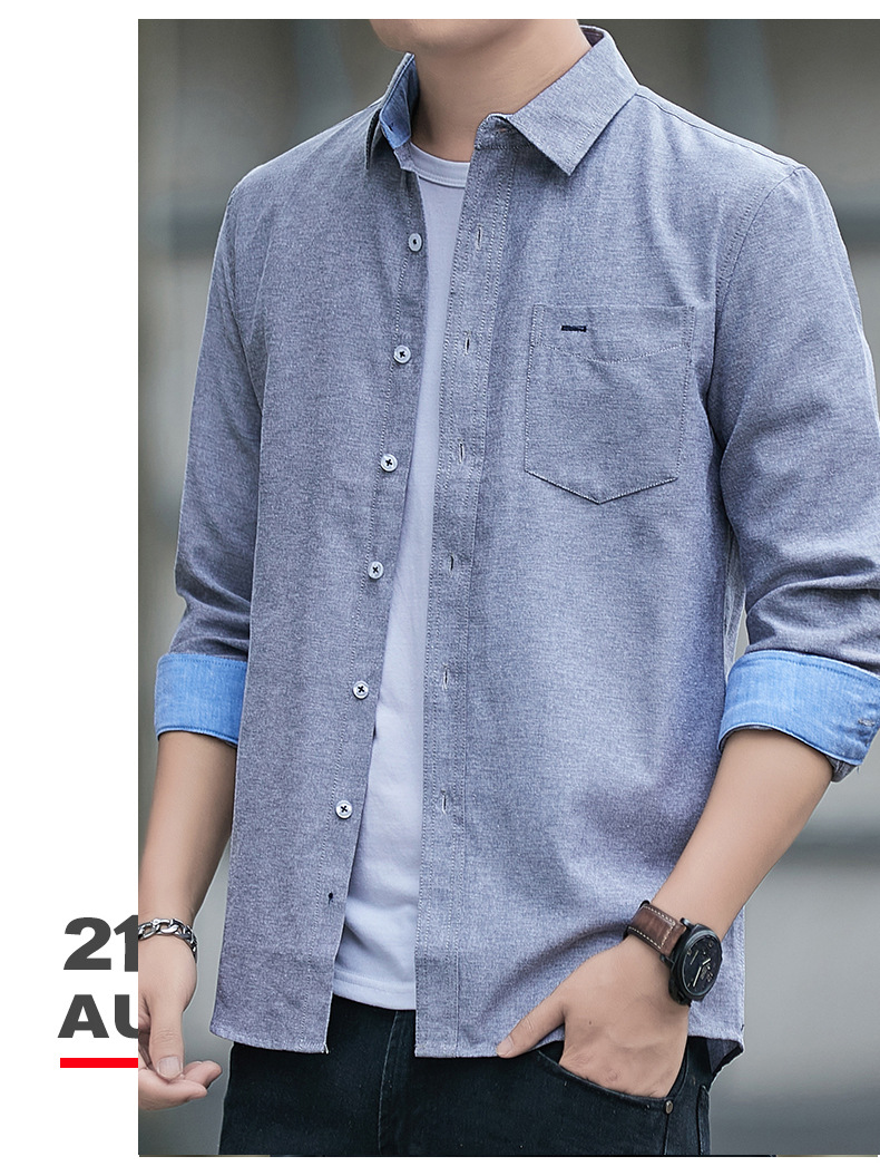 긴팔 셔츠 코트 남성용 봄과 가을 얇은 컬러 매칭 트렌드 슬림핏 라펠 셔츠 심플 캐주얼 청소년 남성 의류스토어 가기