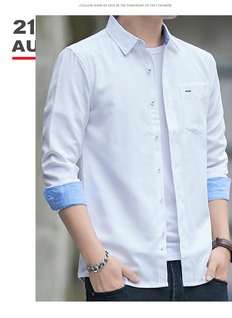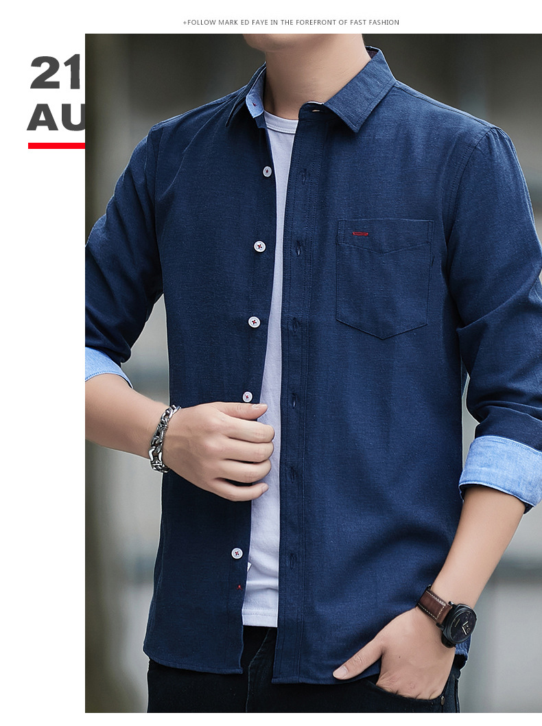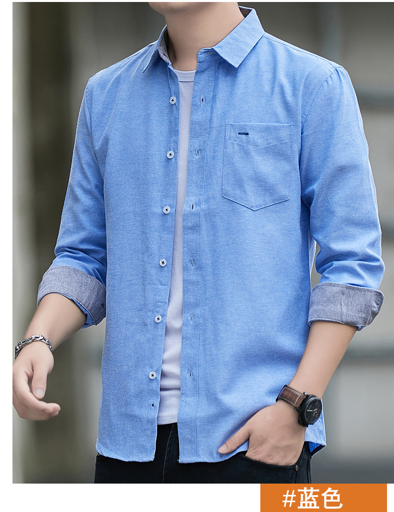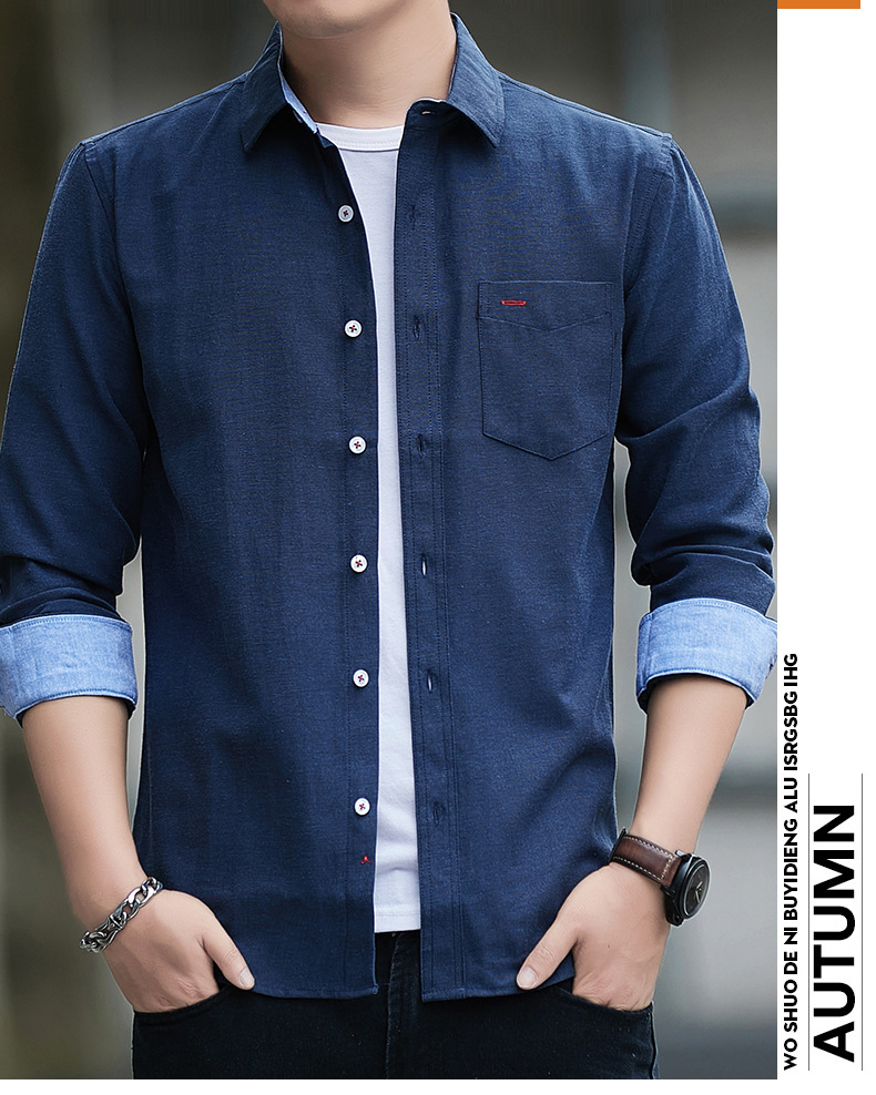 긴팔 셔츠 코트 남성용 봄과 가을 얇은 컬러 매칭 트렌드 슬림핏 라펠 셔츠 심플 캐주얼 청소년 남성 의류스토어 가기