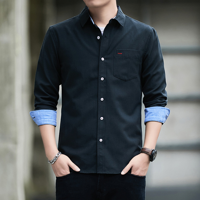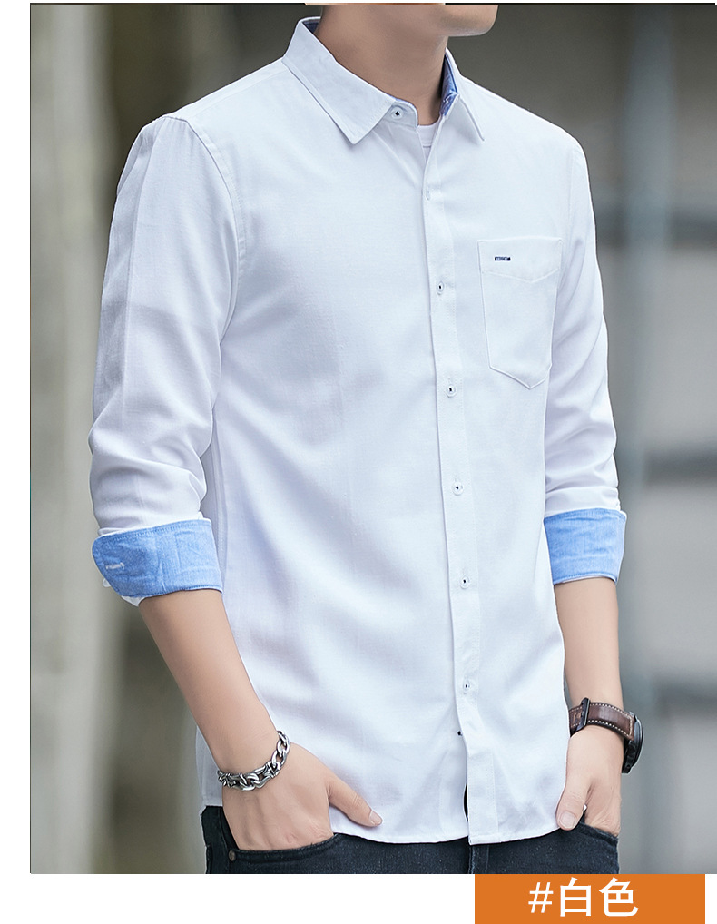 긴팔 셔츠 코트 남성용 봄과 가을 얇은 컬러 매칭 트렌드 슬림핏 라펠 셔츠 심플 캐주얼 청소년 남성 의류