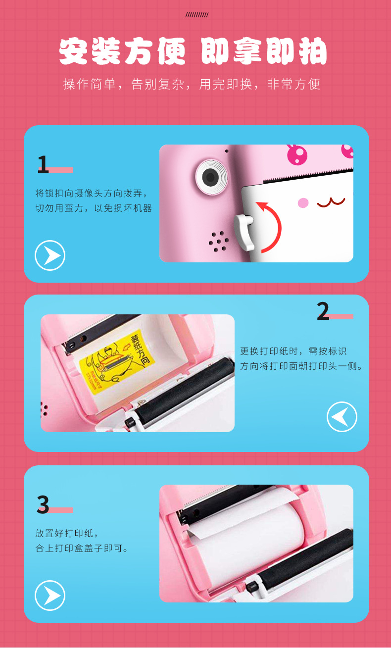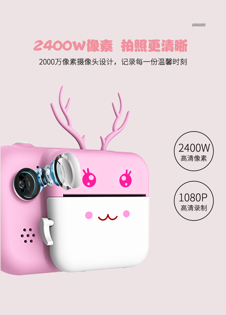 새로운 국경 어린이 프린터 사슴 HD 인쇄 스마트 카메라 480 백만 개의 열 종이