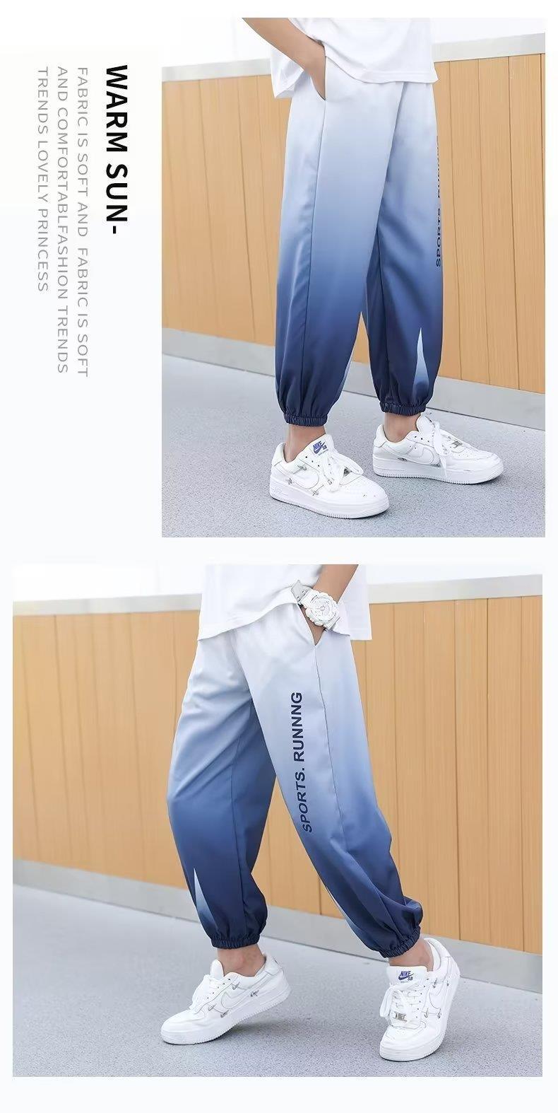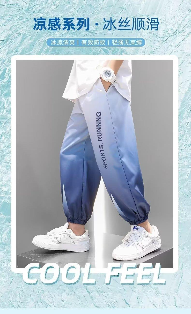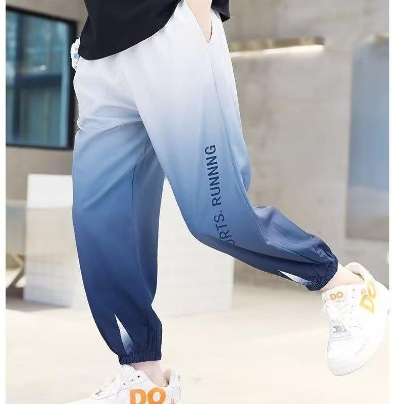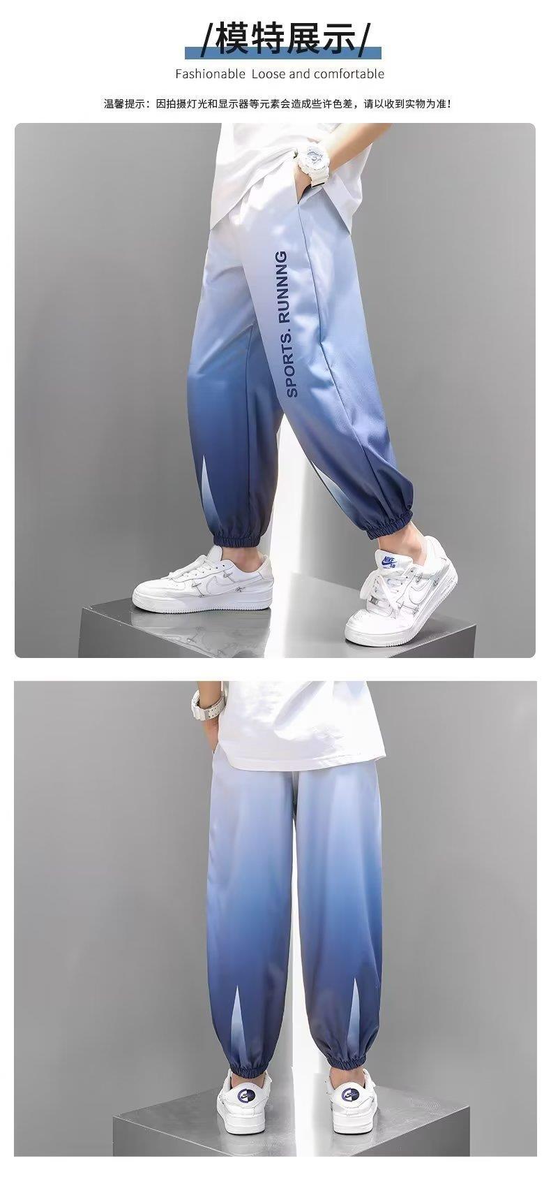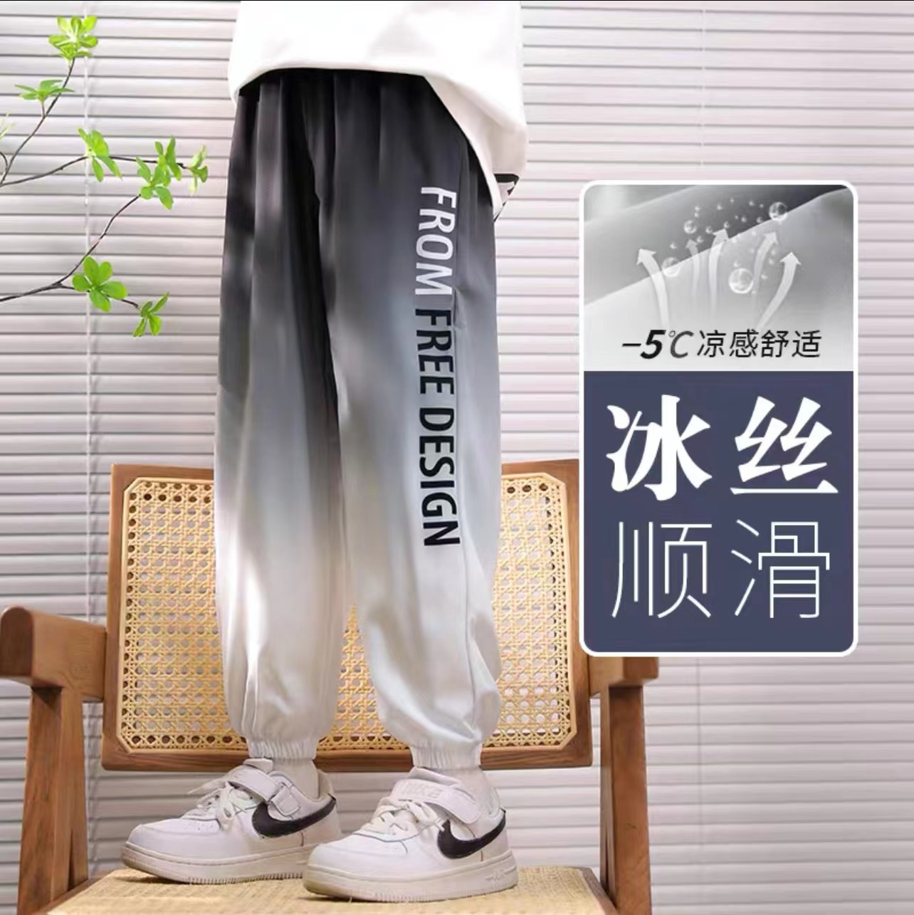 여름 아이스 실크 소년 바지 잘 생긴 어린이 스포츠 바지 대형 어린이 얇은 모기 방지 다리 바지 캐주얼 발목 길이 바지스토어 가기