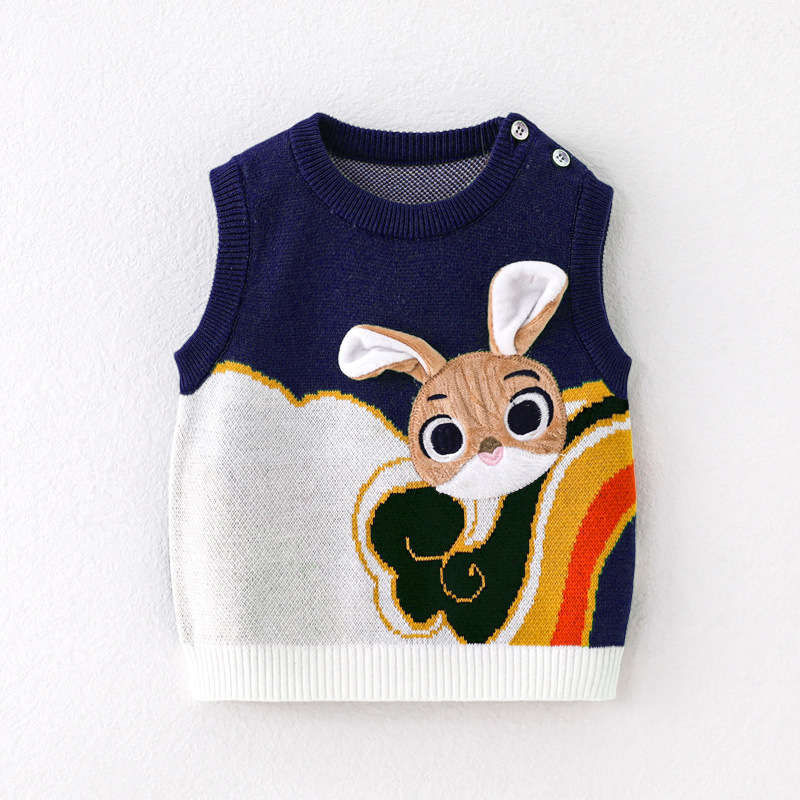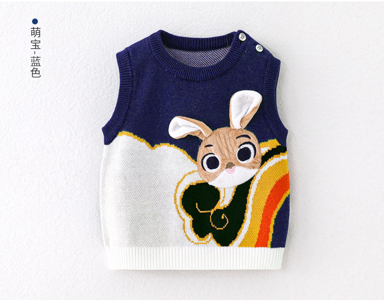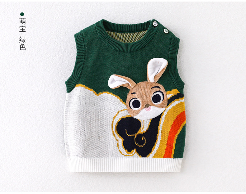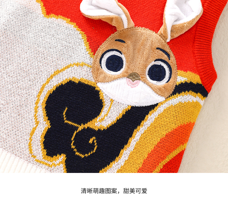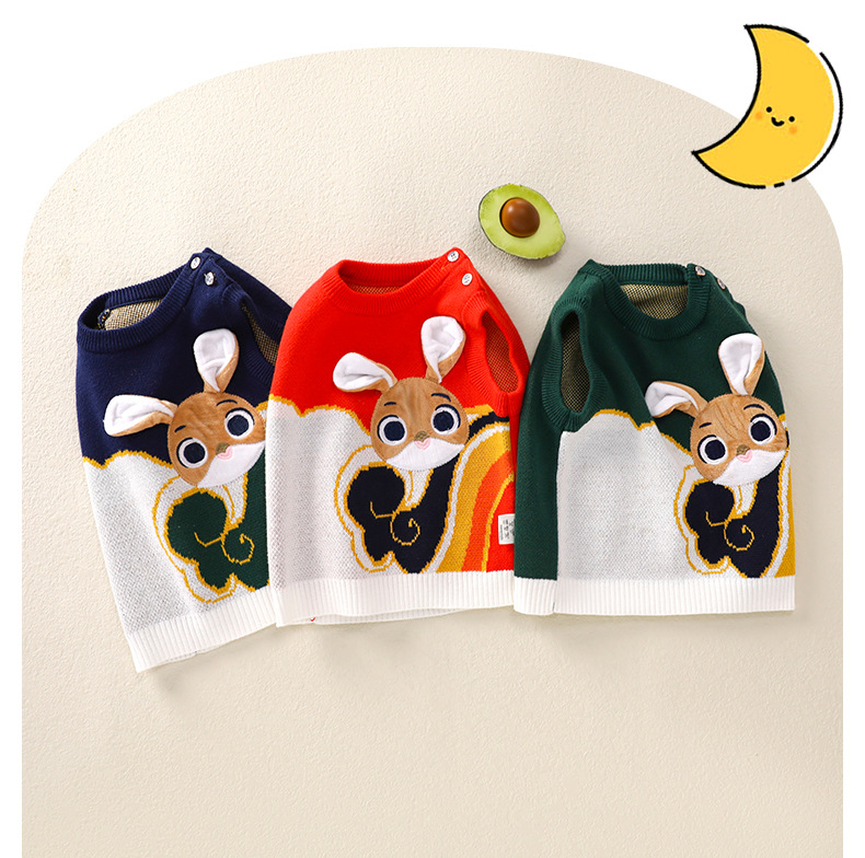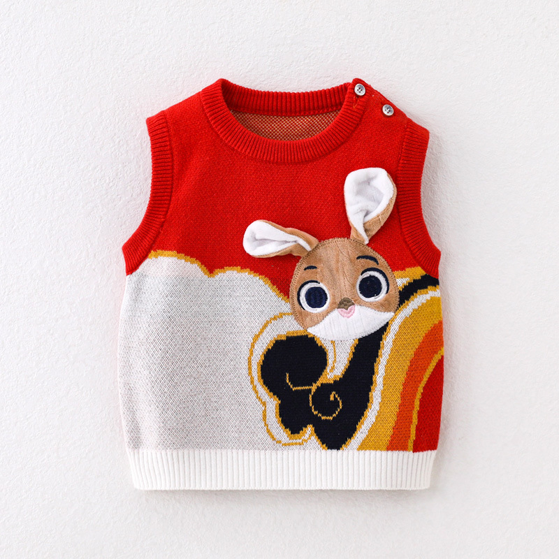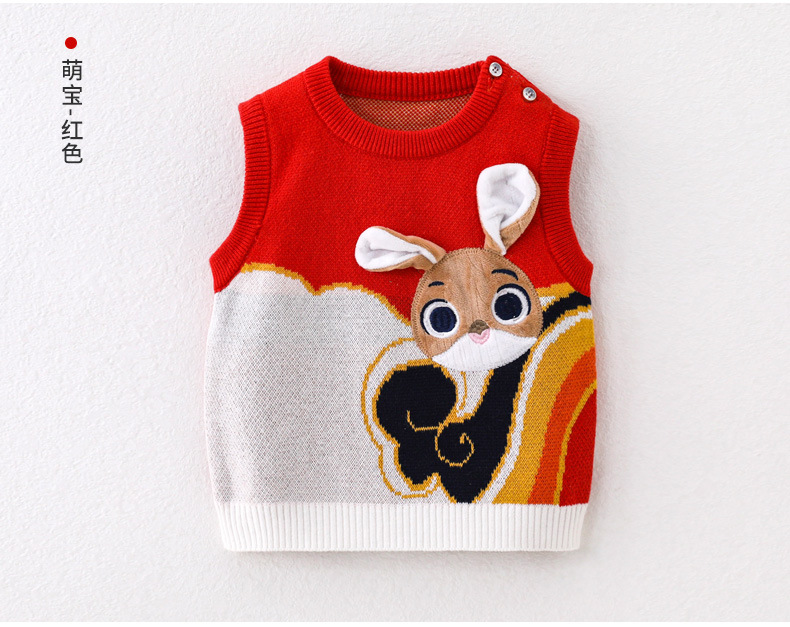 2024 봄과 가을 새로운 아기 풀오버 조끼 토끼 귀여운 스타일 남성과 여성 범용