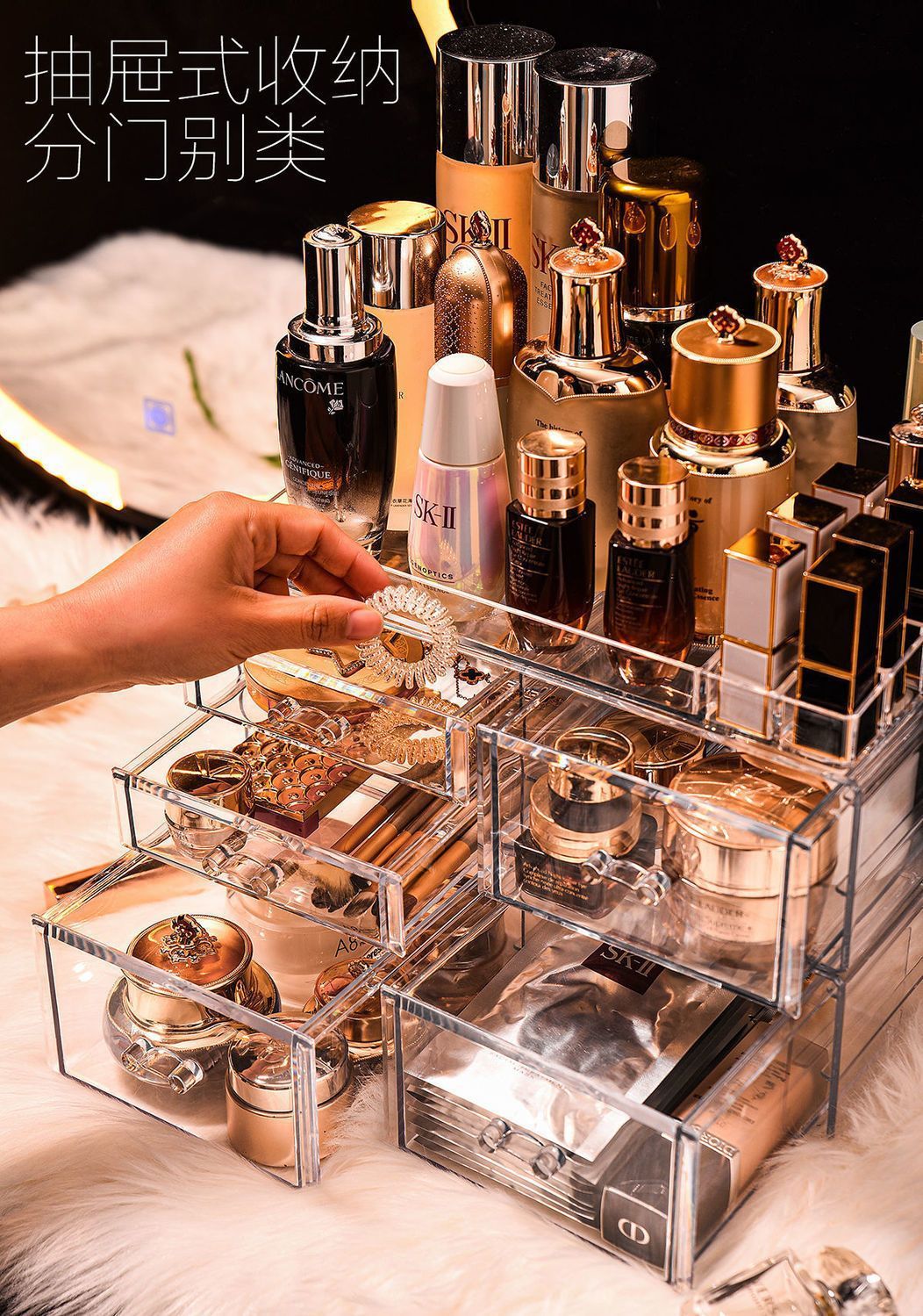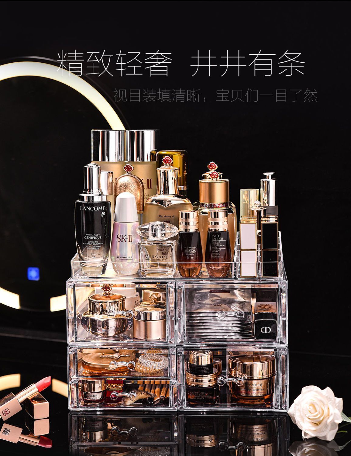 데스크탑 화장품 보관함 투명 서랍 다층 립스틱 랙 룸 마감 선반 다기능 스토리지 랙스토어 가기