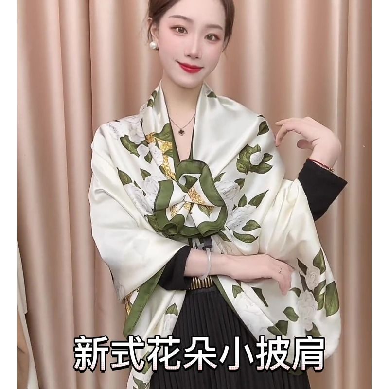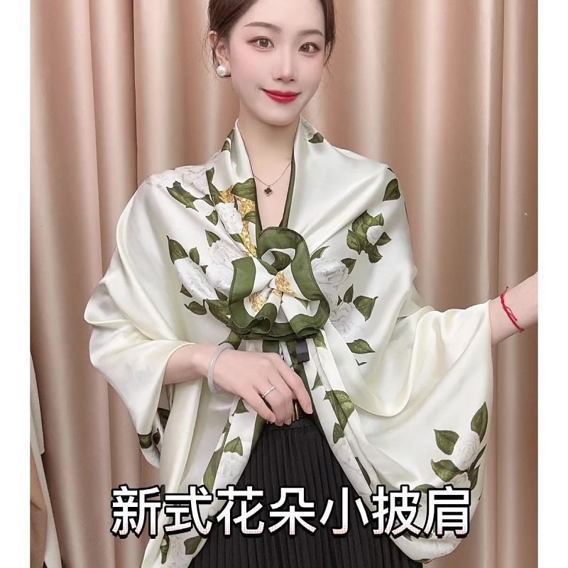Li Brocade 새틴 스카프 여성의 웨스턴 스타일 패션 모든 매치 인쇄 여름 에어컨 룸 따뜻한 목 보호 숄 스카프스토어 가기