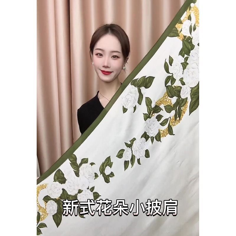 • 녹색 가장자리 꽃-리 브로케이드 새틴 롱 스카프
