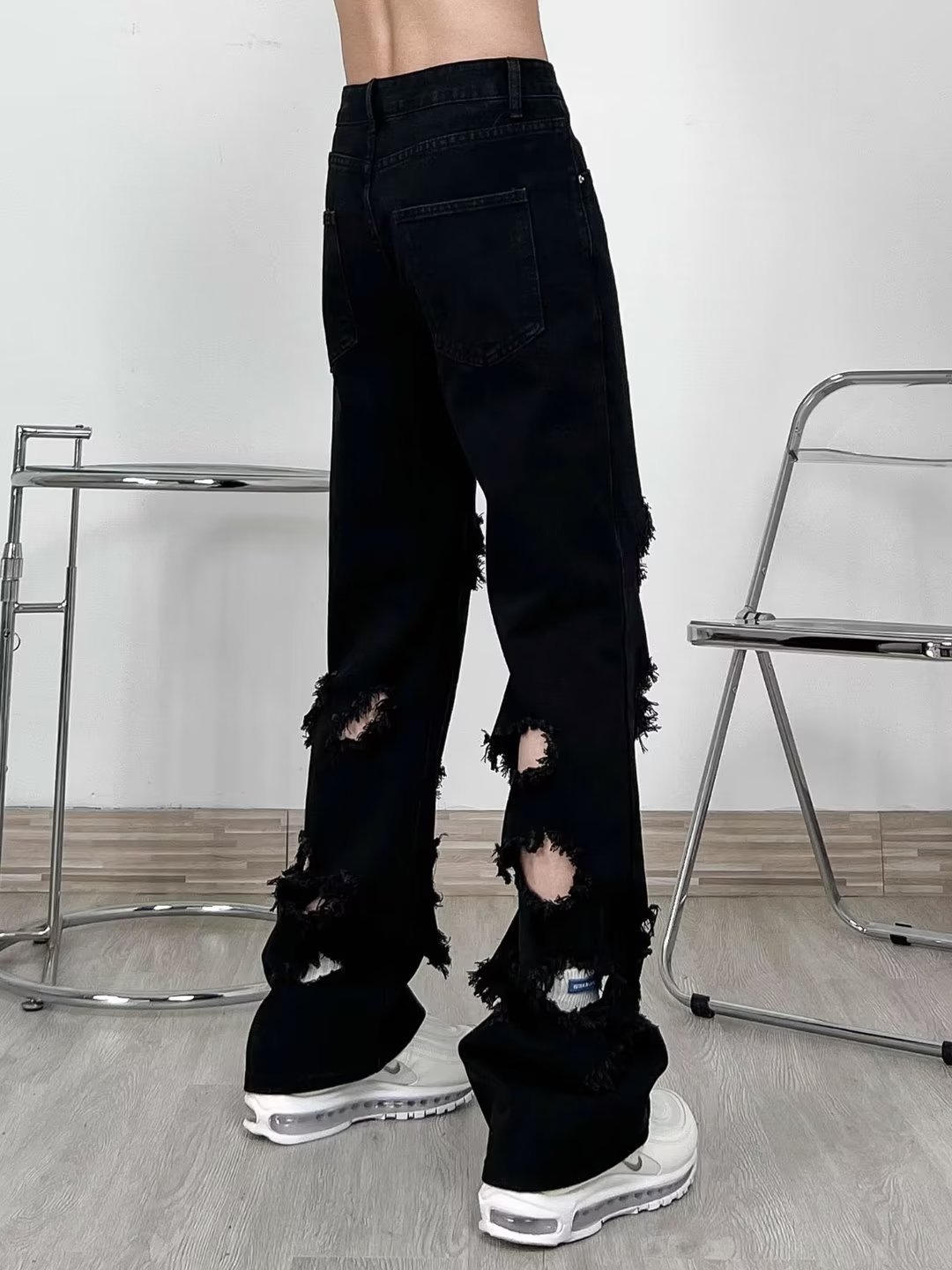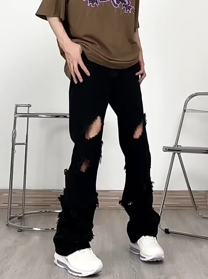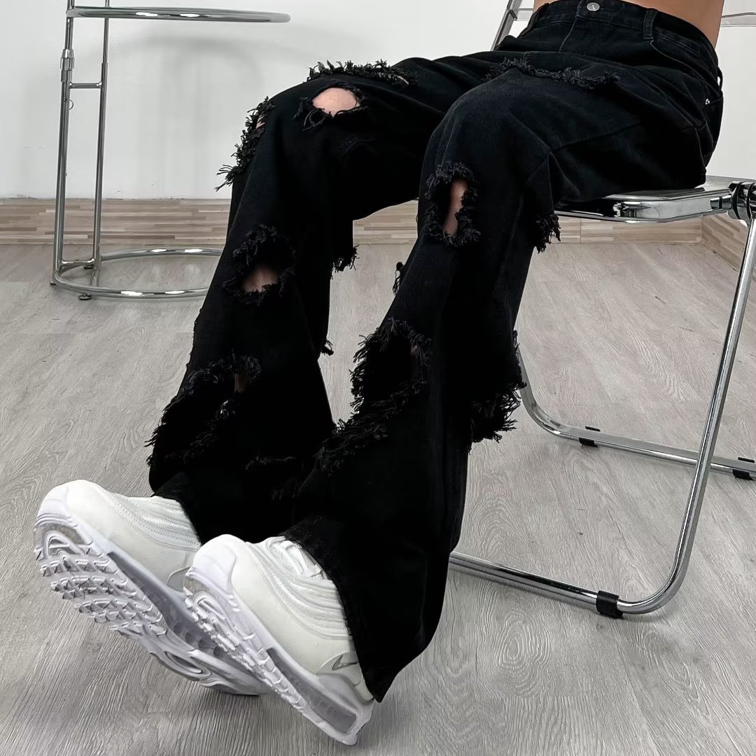 랩 에지 스트레이트 청바지 남자의 봄과 가을 미국 스타일 하이 스트리트 블랙 스키니 팬츠 세련된 브랜드 플러스 사이즈 슬림핏 롱 팬츠스토어 가기