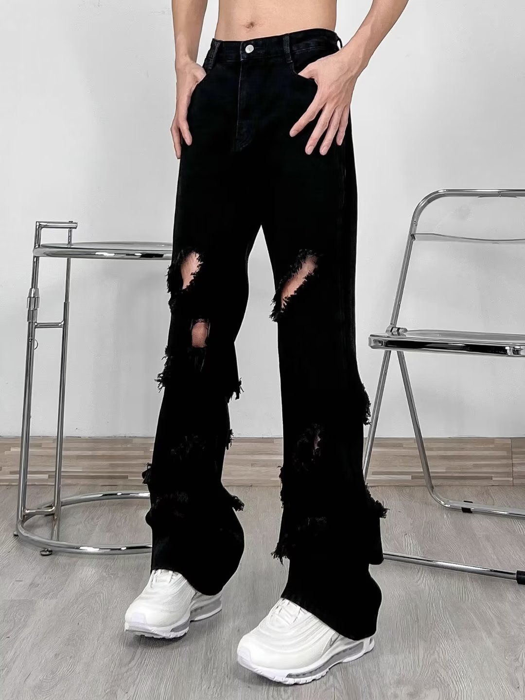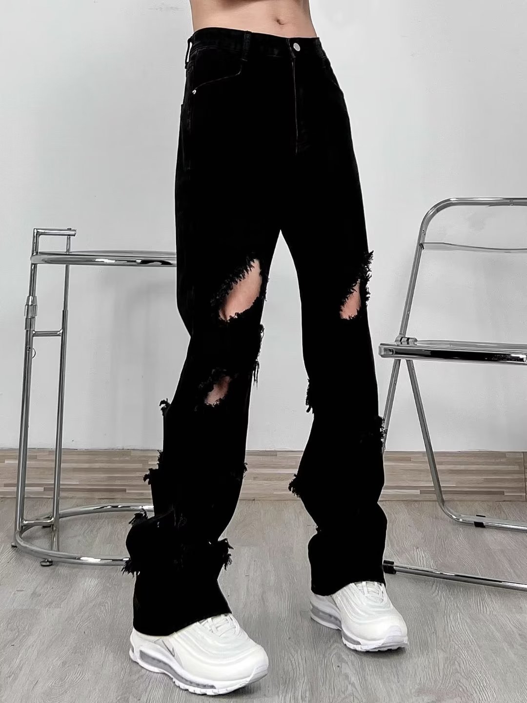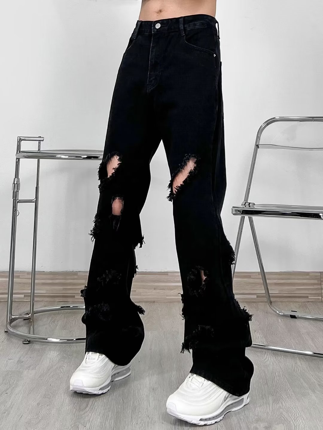 랩 에지 스트레이트 청바지 남자의 봄과 가을 미국 스타일 하이 스트리트 블랙 스키니 팬츠 세련된 브랜드 플러스 사이즈 슬림핏 롱 팬츠스토어 가기