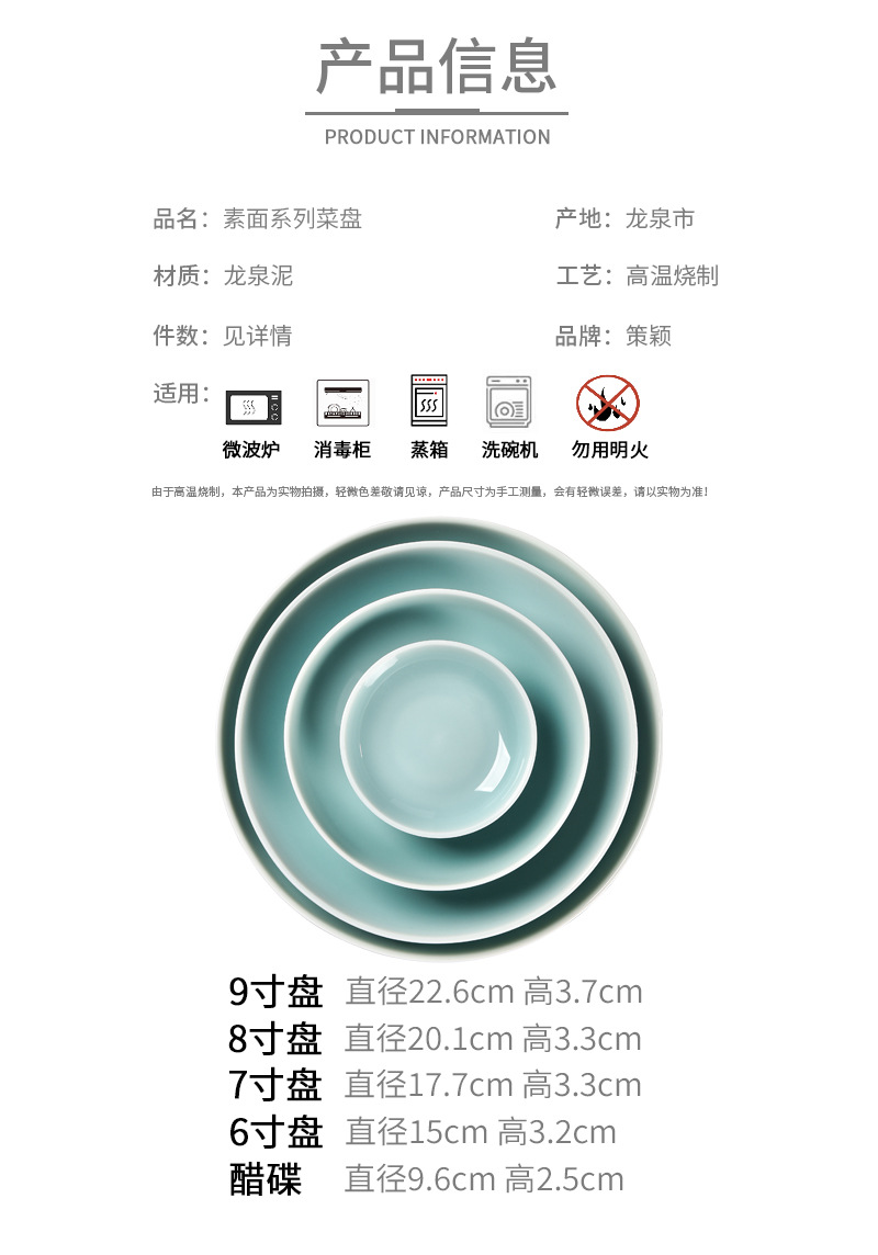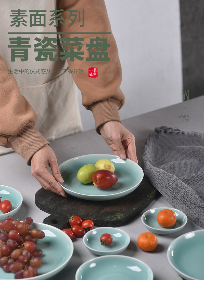 세라믹 식기 청자 플레이트 세트 중국 가정 라운드 7 인치 플레이트 식초 플레이트 호텔 수프 플레이트 8 인치 플레이트