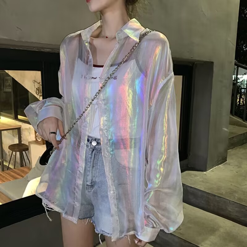 솔트 스타일 자외선 차단제 셔츠 여성용 2023 여름 얇은 느슨한 중간 길이 긴 소매 퍼플 셔츠 디자인 감각