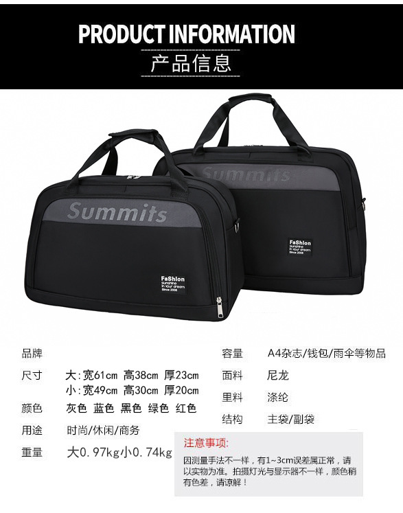 단거리 여행 가방 남성용 휴대용 대용량 수하물 가방 여성용 두꺼운 나일론 발수성 스포츠 피트니스 가방스토어 가기