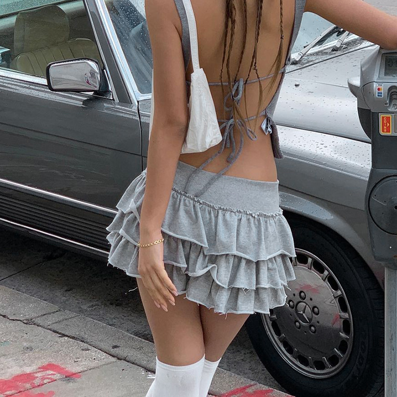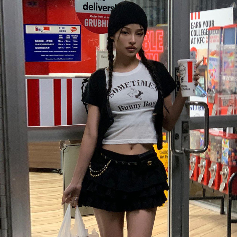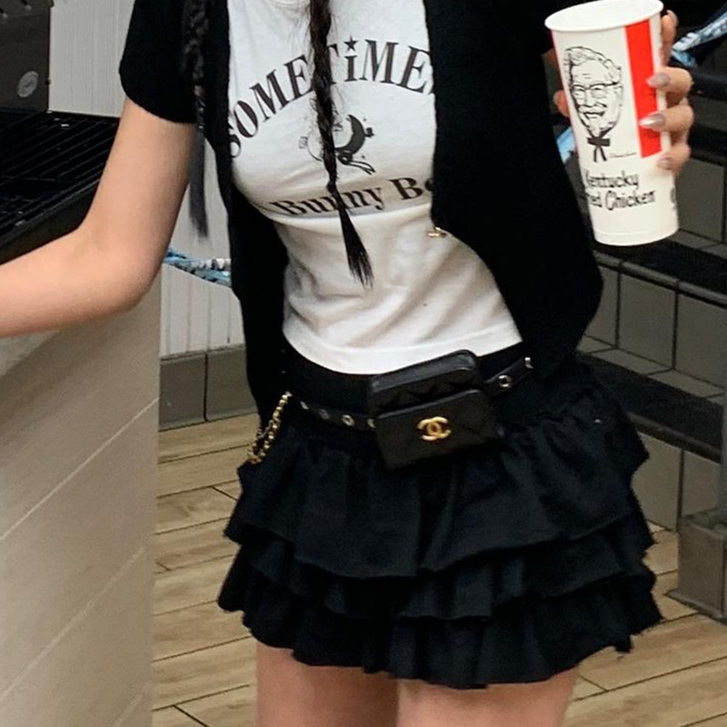 YJ23243 하이 웨이스트 슈퍼 쇼트 핫 걸 케이크 스커트 2023 여름 신상품 유행 모든 매치 달콤한 매운 스타일 스커트