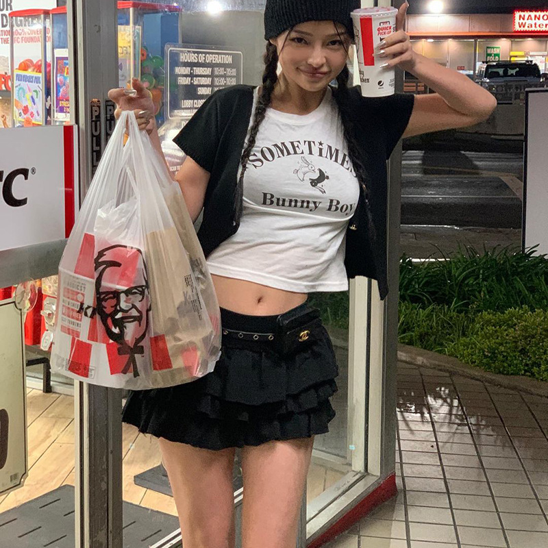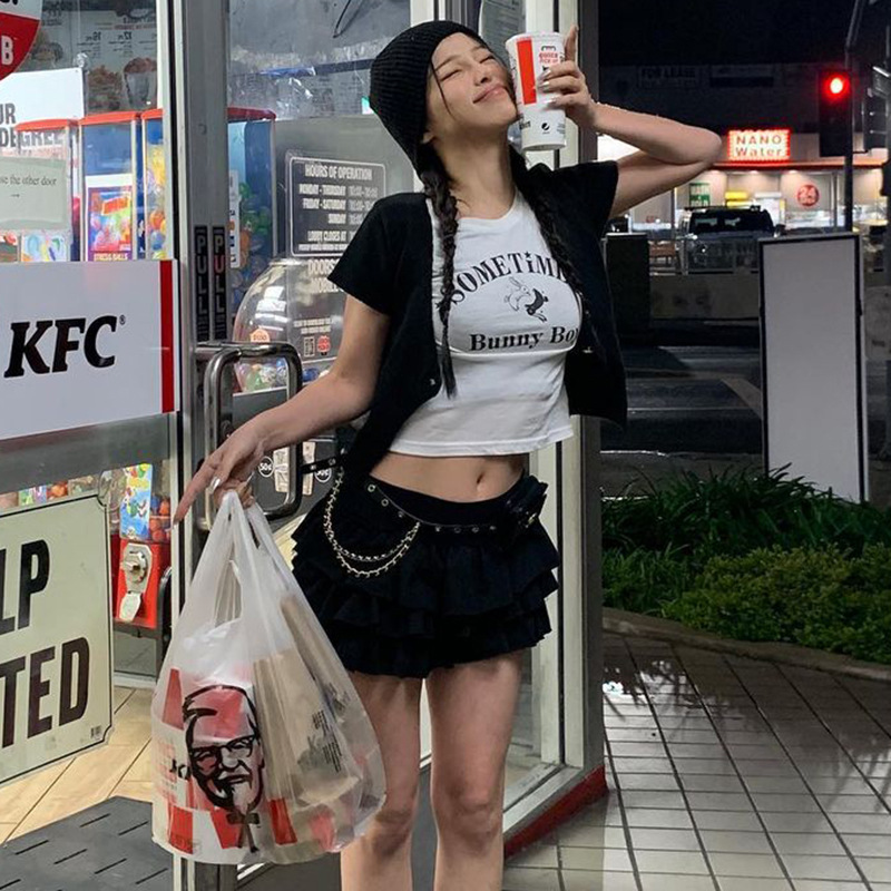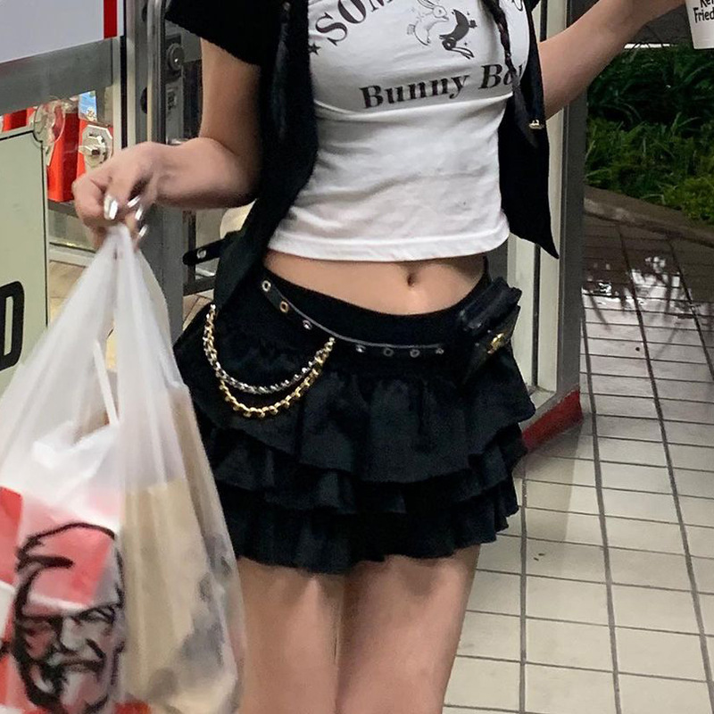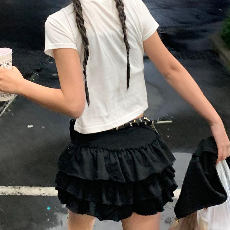 YJ23243 하이 웨이스트 슈퍼 쇼트 핫 걸 케이크 스커트 2023 여름 신상품 유행 모든 매치 달콤한 매운 스타일 스커트스토어 가기