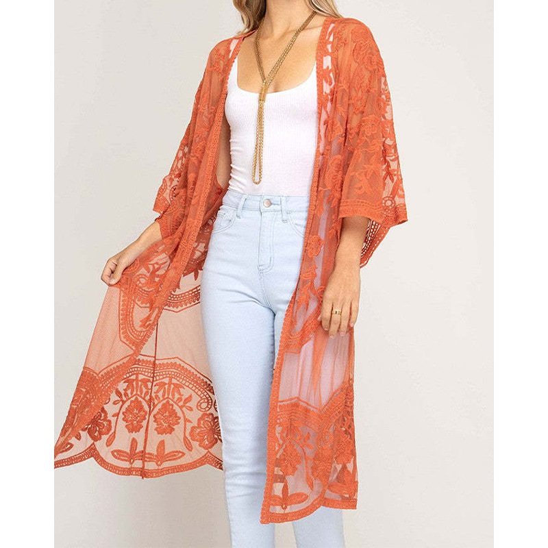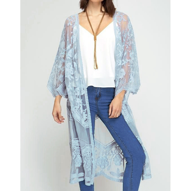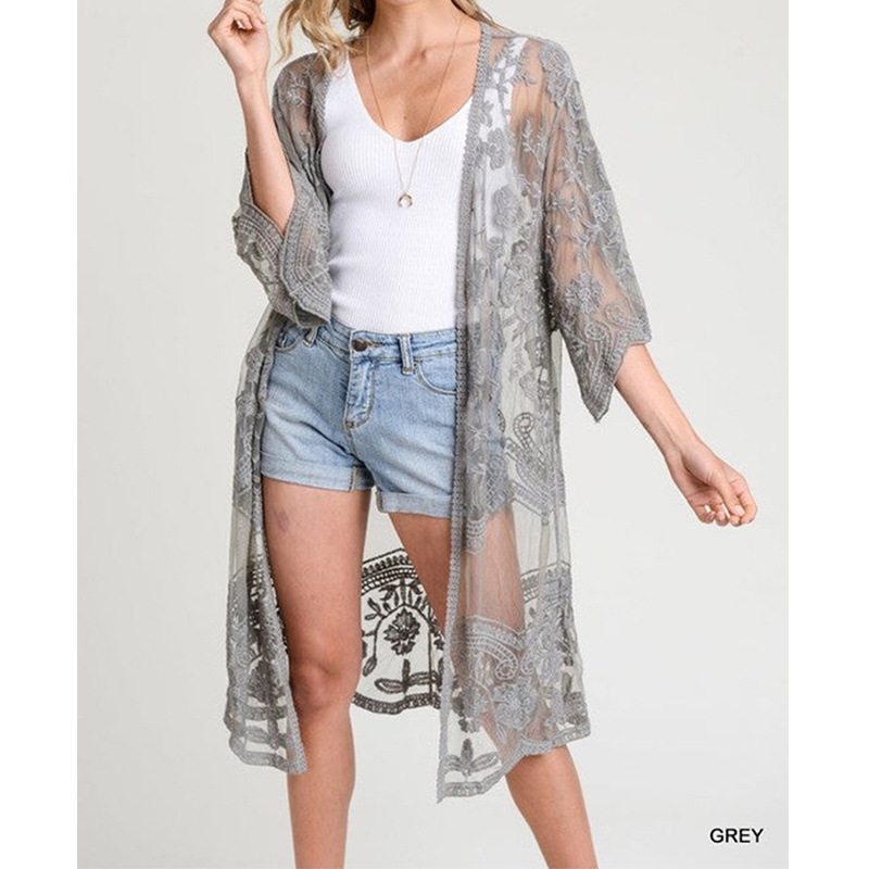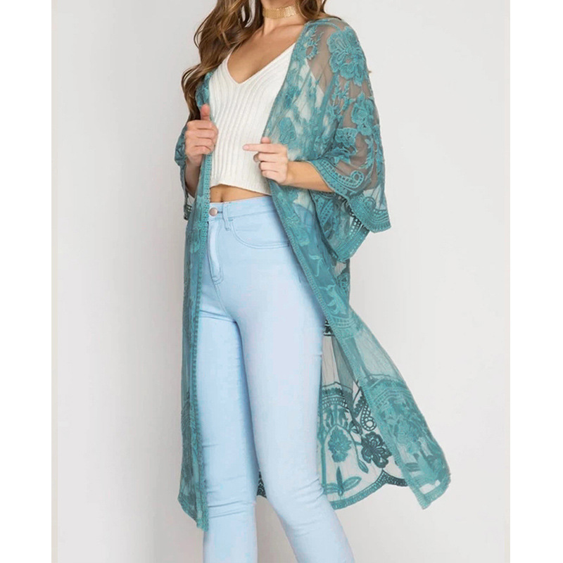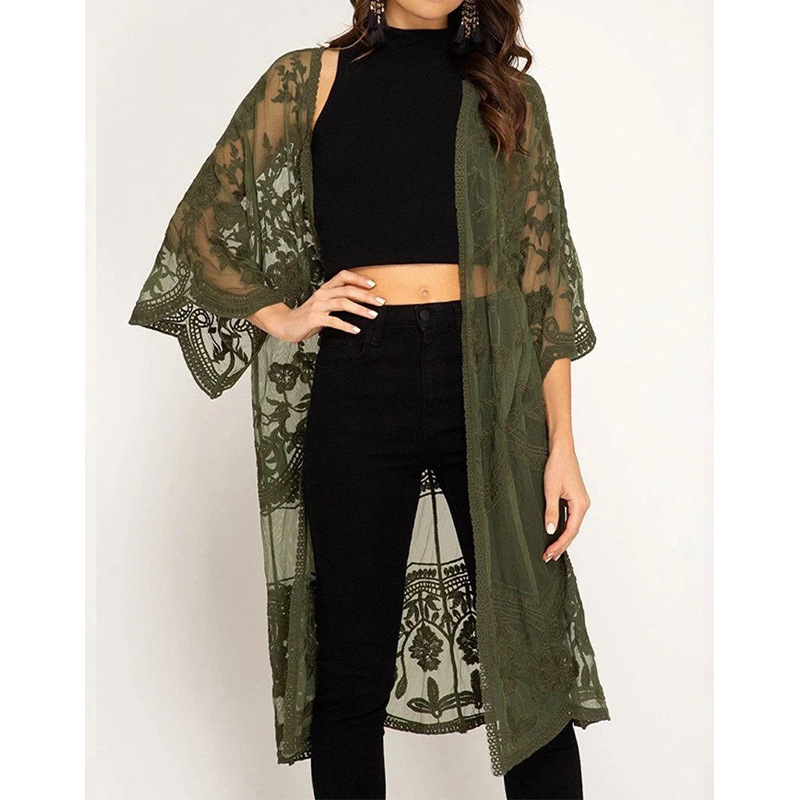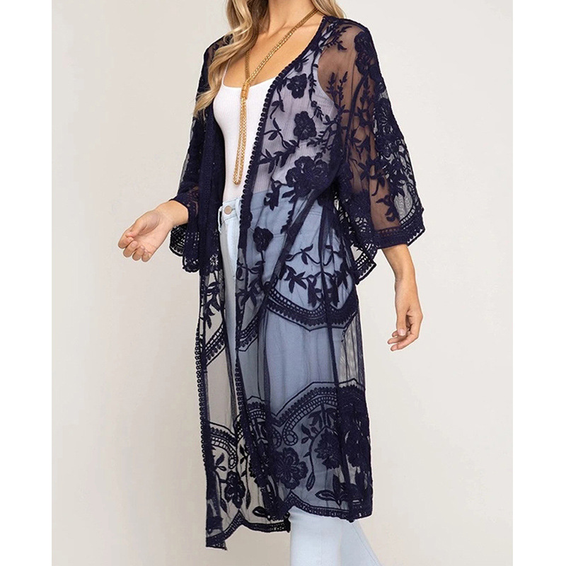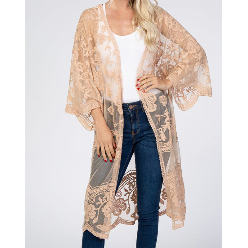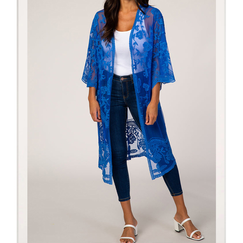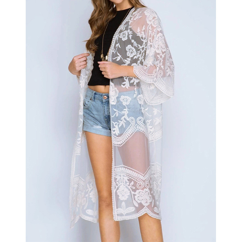 아마존 유럽과 미국 비치 블라우스 자수 레이스 느슨한 휴가 비키니 블라우스 카디건 외부 바지 크로스 보더