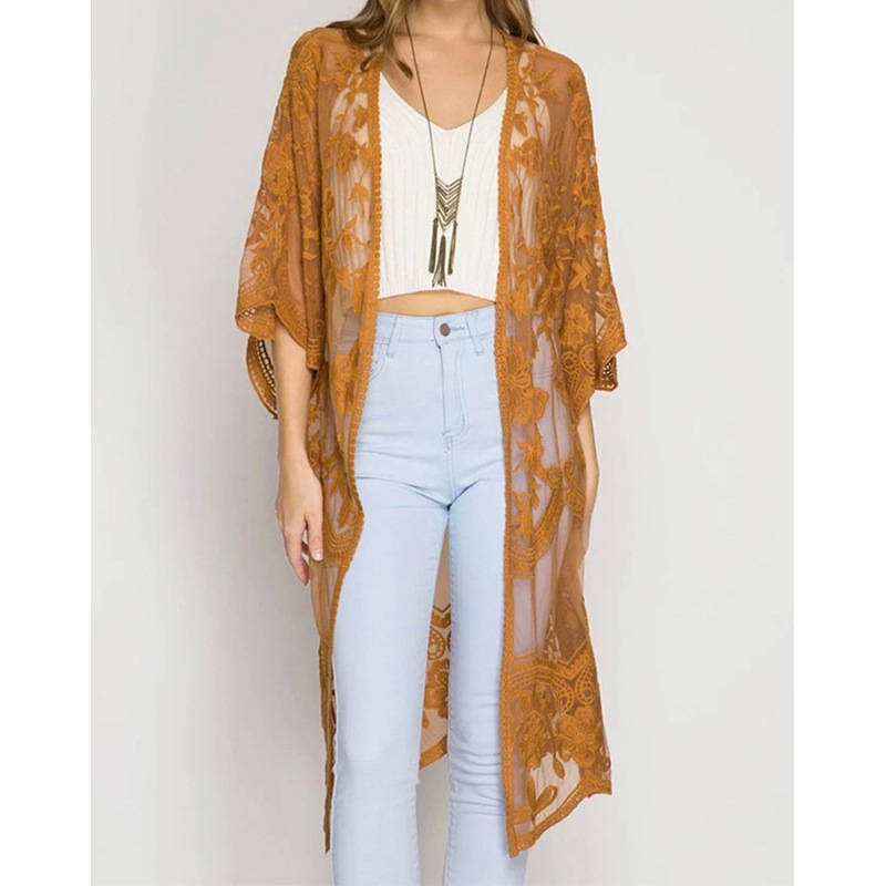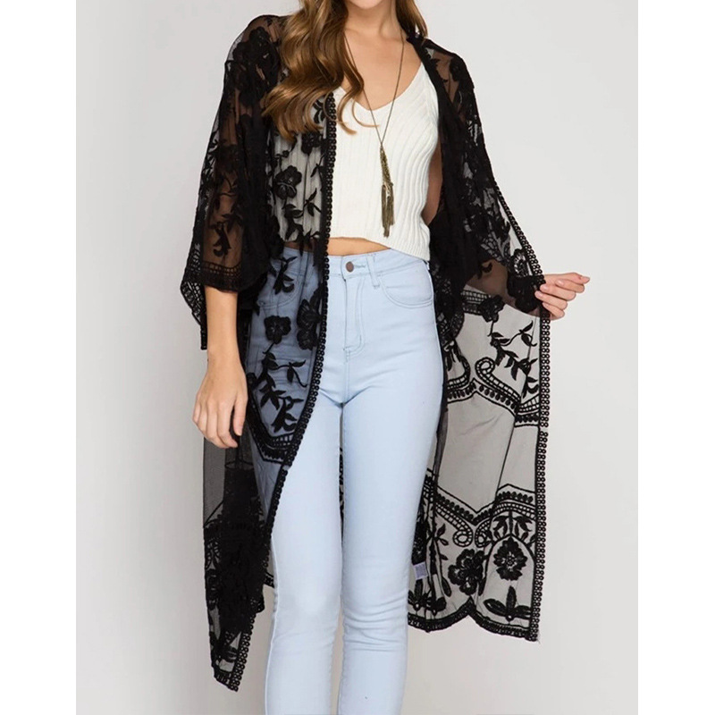 아마존 유럽과 미국 비치 블라우스 자수 레이스 느슨한 휴가 비키니 블라우스 카디건 외부 바지 크로스 보더스토어 가기