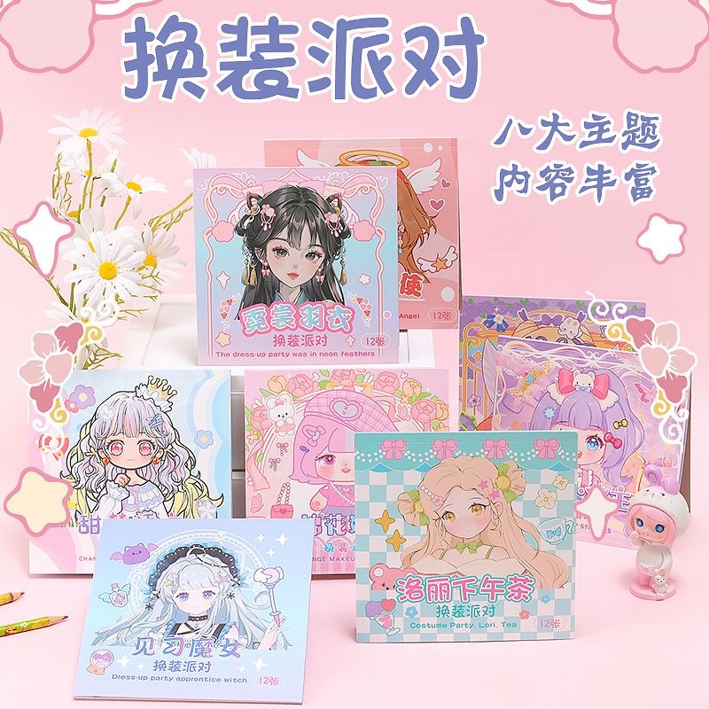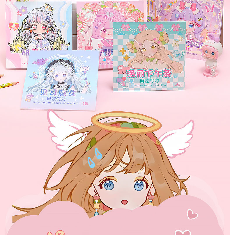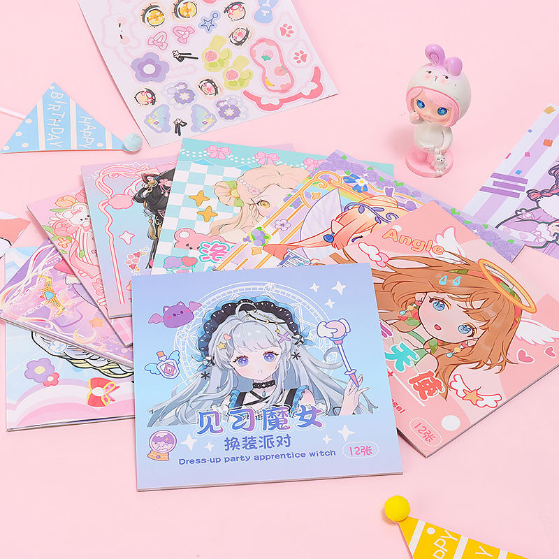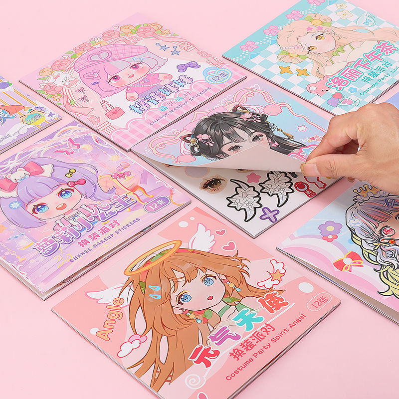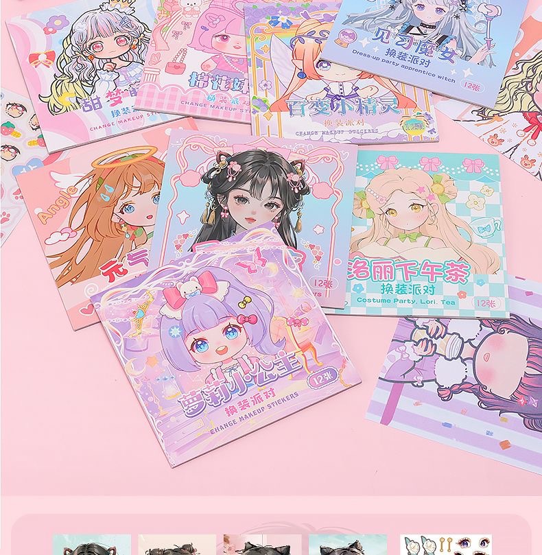 원피스 스티커 소녀 어린이 장난감 아름다운 공주 메이크업 변경 스티커 만화 골동품 캐릭터 메이크업 DIY 스티커