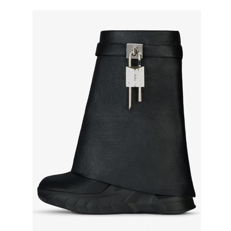 2023 가을과 겨울 외국 무역 라운드 헤드 큰 튜브 스트레이트 잠금 상어 버클 플러스 사이즈 짧은 부츠 몰딩 바닥 튜브 부츠 여성