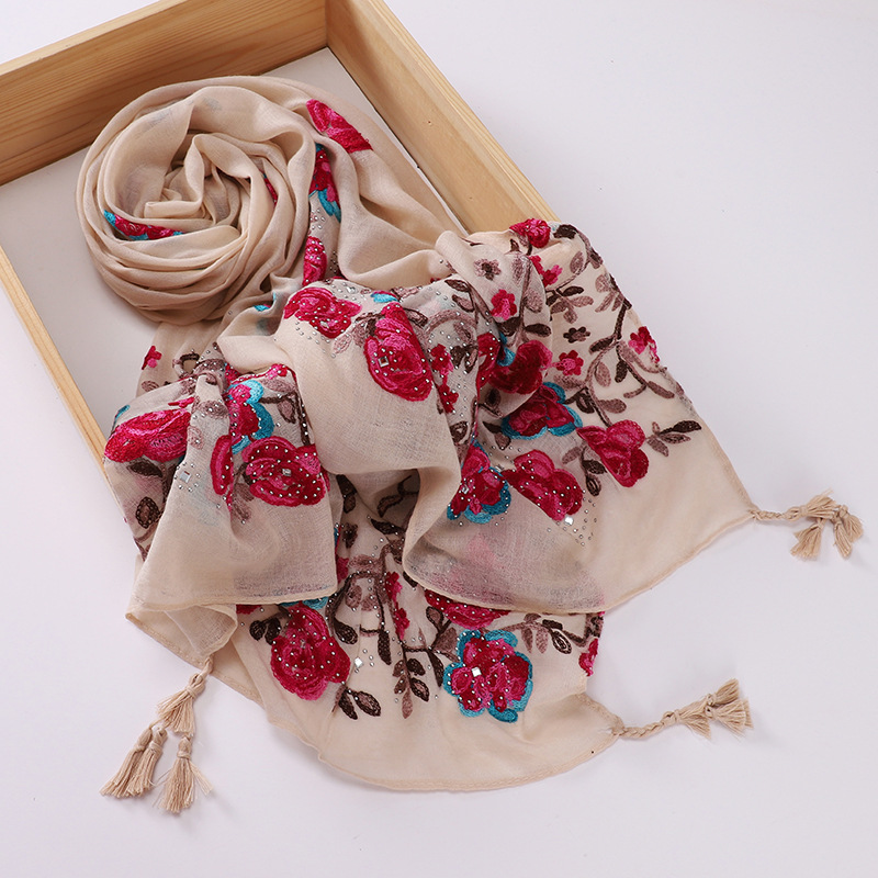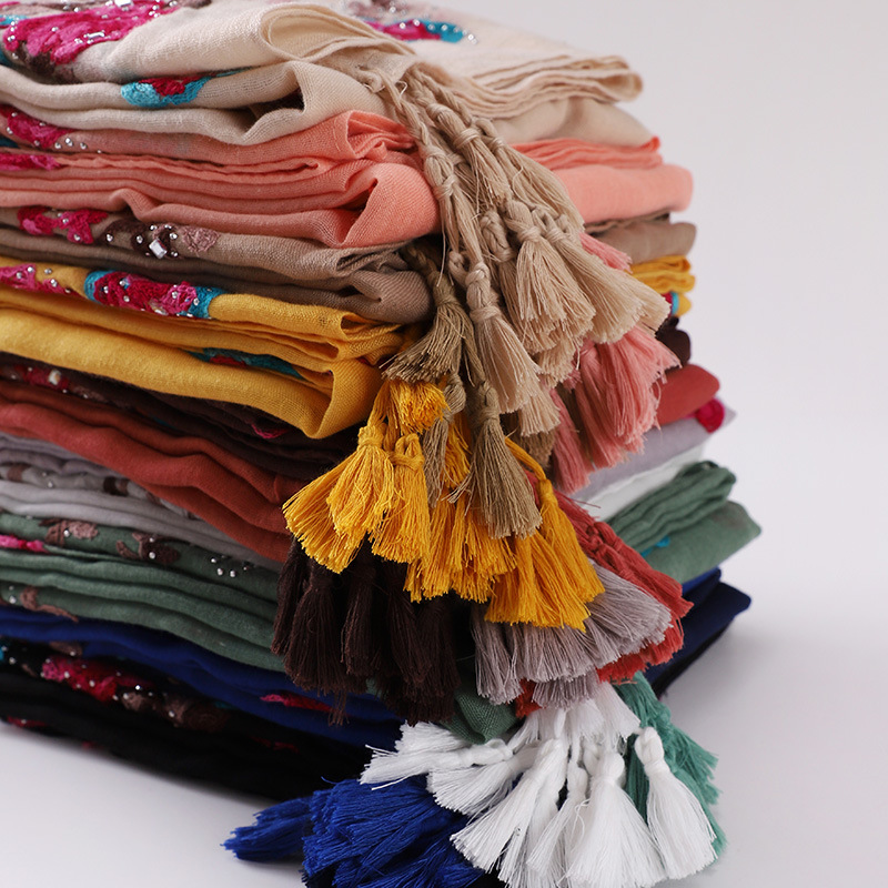 새로운 모조 면과 린넨 자수 교수형 스카프 여성용 커버 헤드 스카프 여행 종종 숄 MSL295스토어 가기