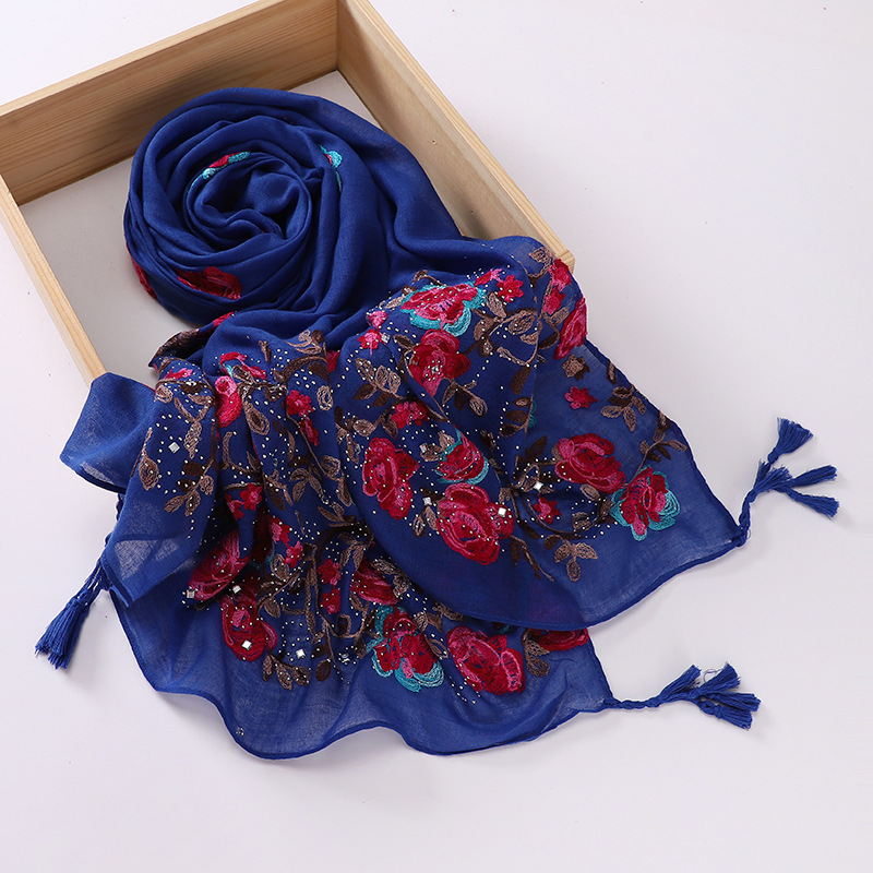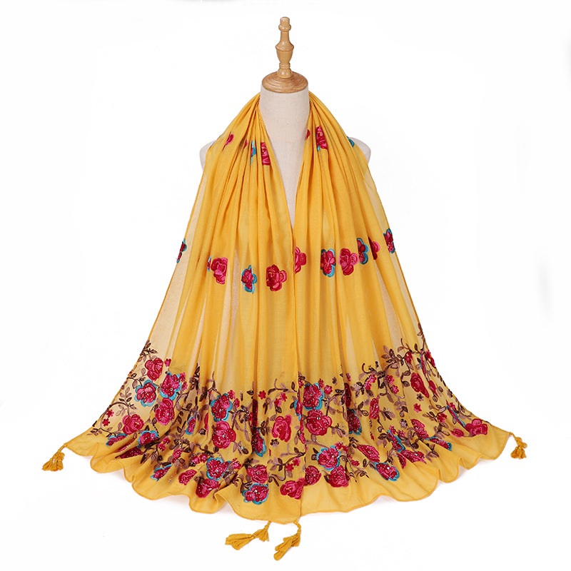 새로운 모조 면과 린넨 자수 교수형 스카프 여성용 커버 헤드 스카프 여행 종종 숄 MSL295