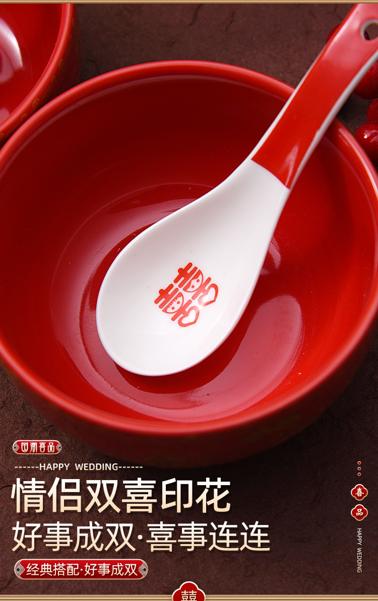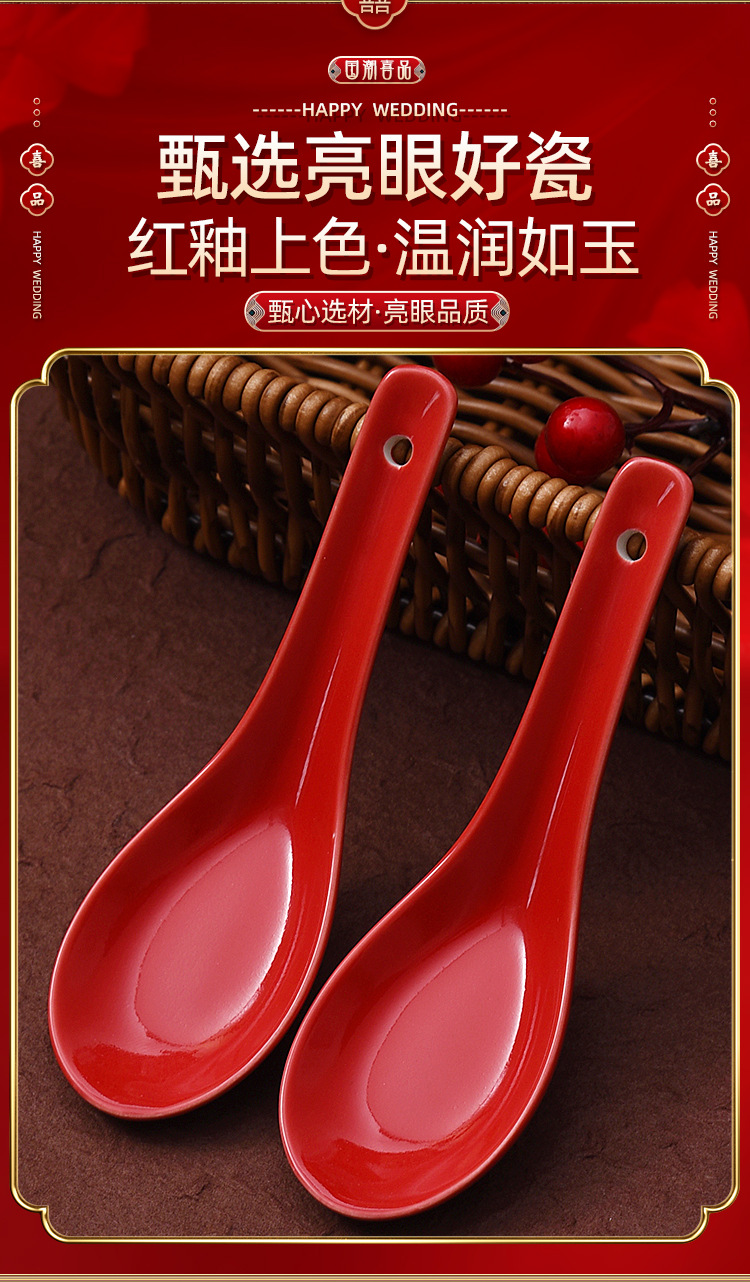 웨딩 레드 스푼 세라믹 해피 스푼 웨딩 식기 스푼 중국식 웨딩 연회 용품 큰 빨간 스푼스토어 가기