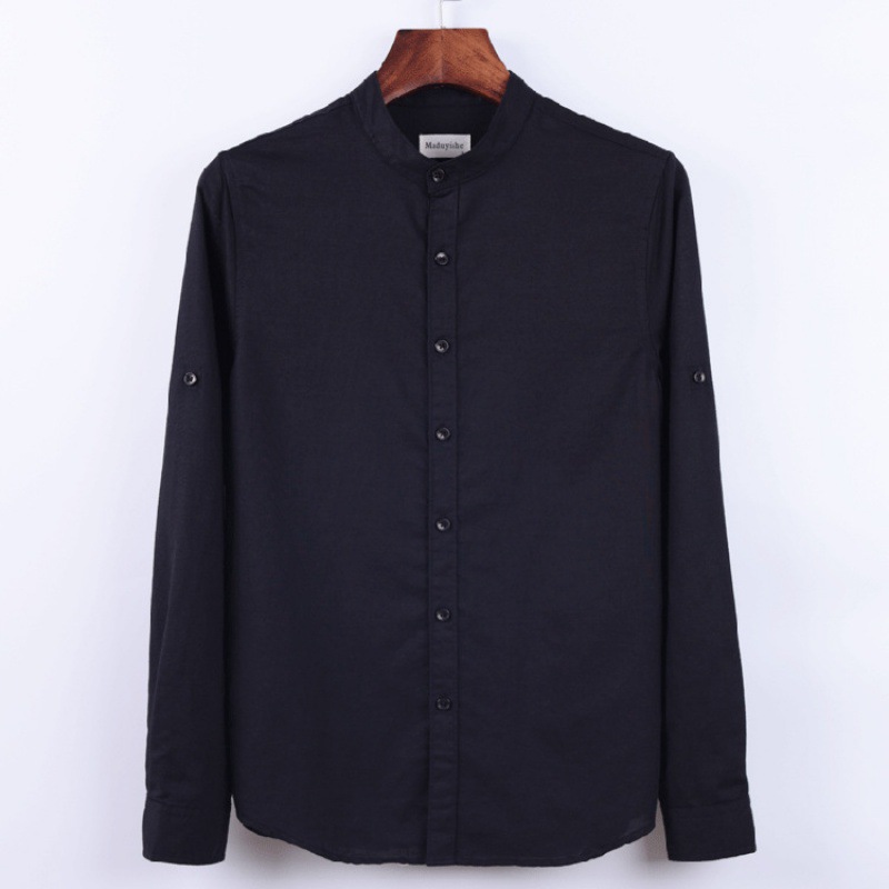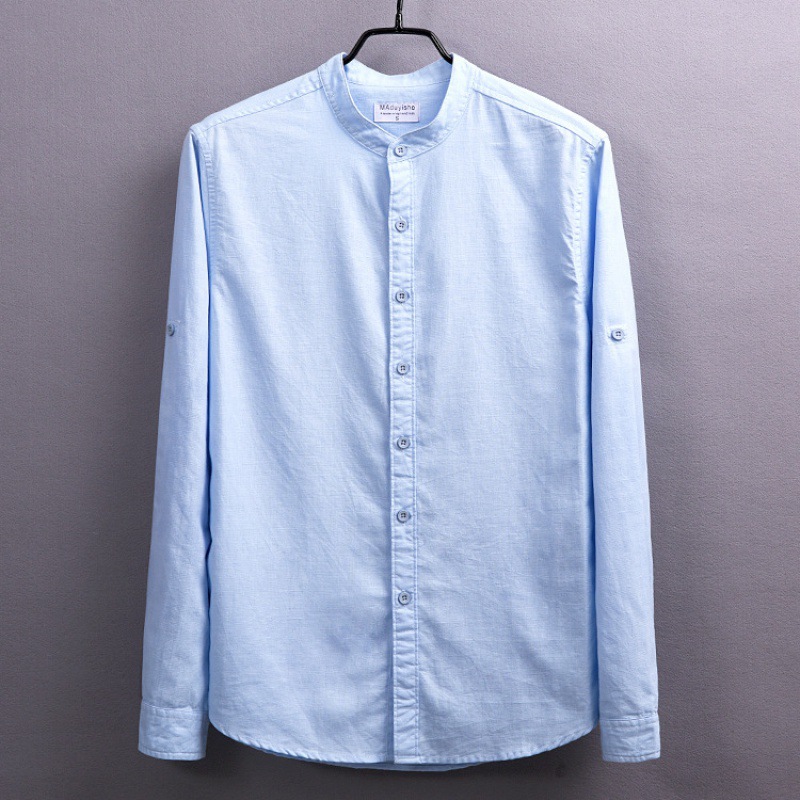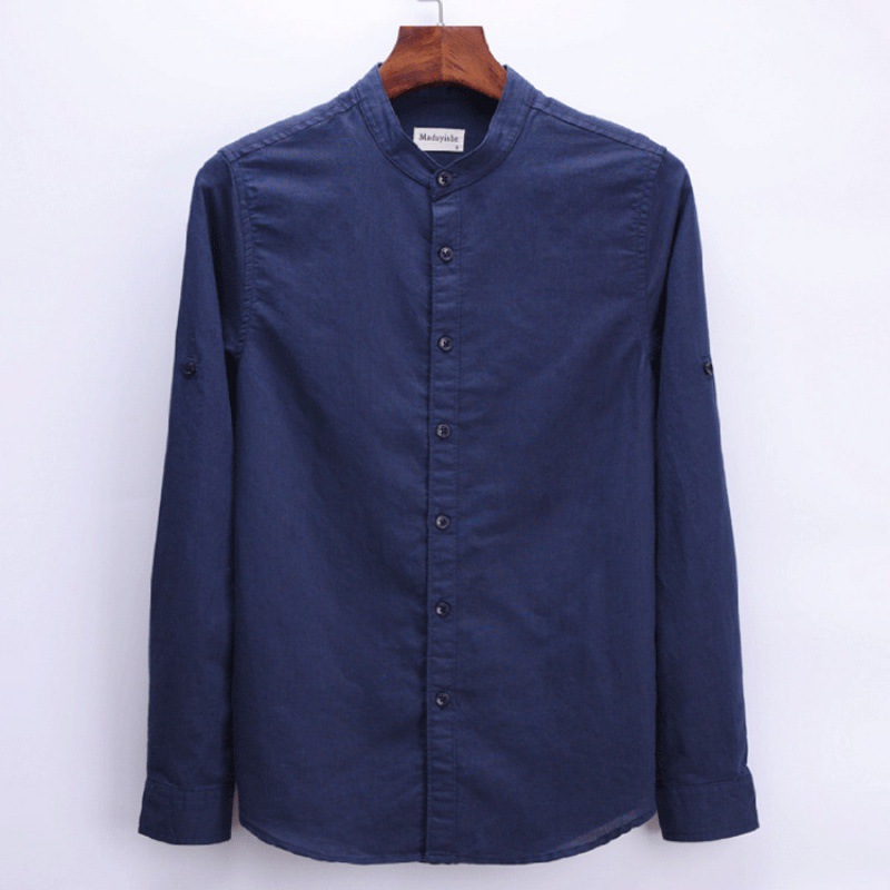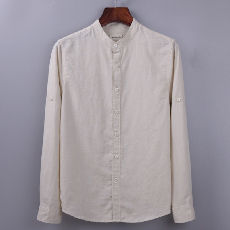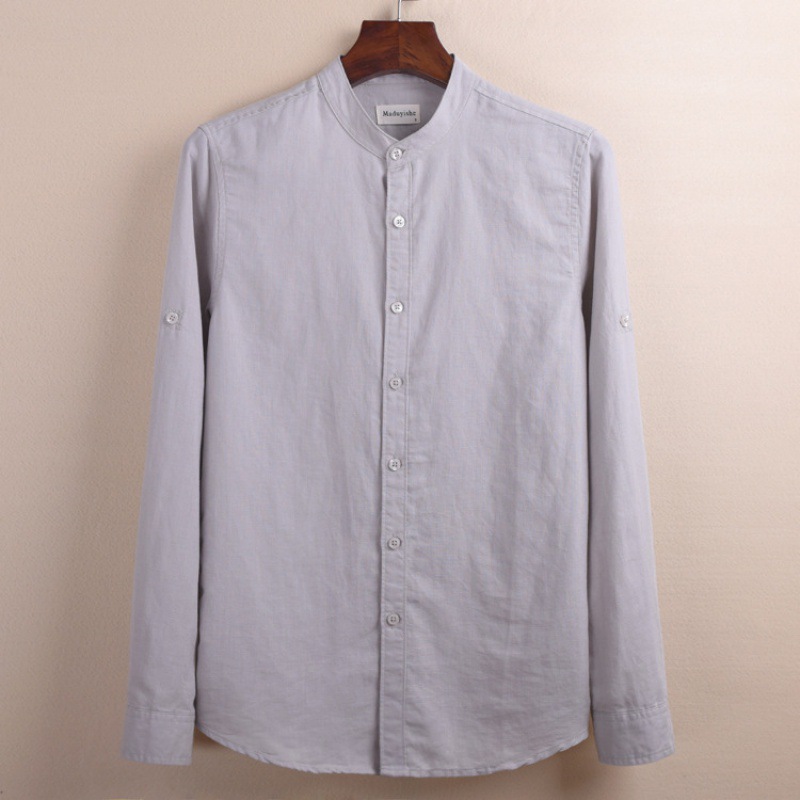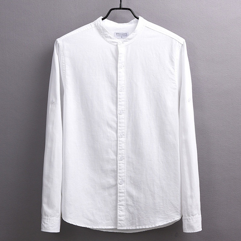 6003 단색 빈티지 중국 스타일 통기성 긴 소매 라운드 넥 린넨 셔츠 남자의 플러스 사이즈 면 린넨 스탠드 칼라 화이트 셔츠스토어 가기