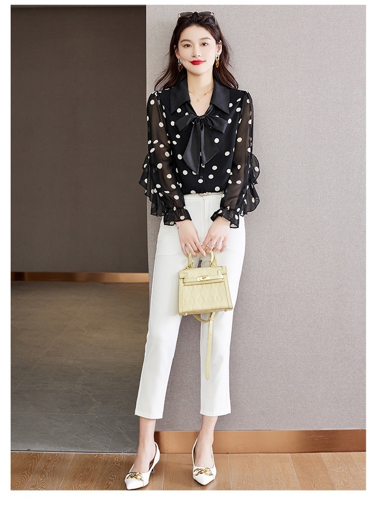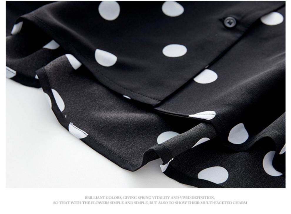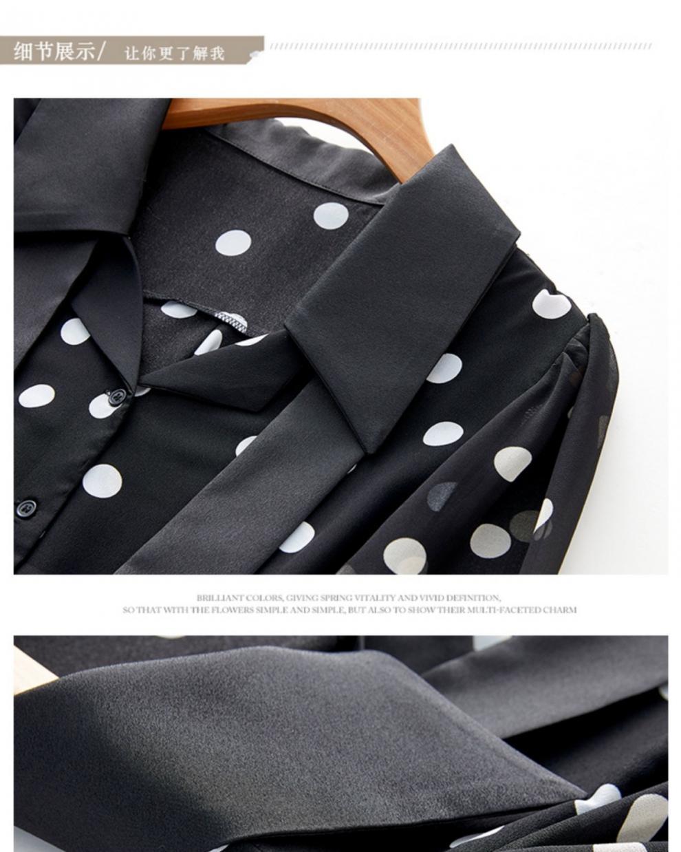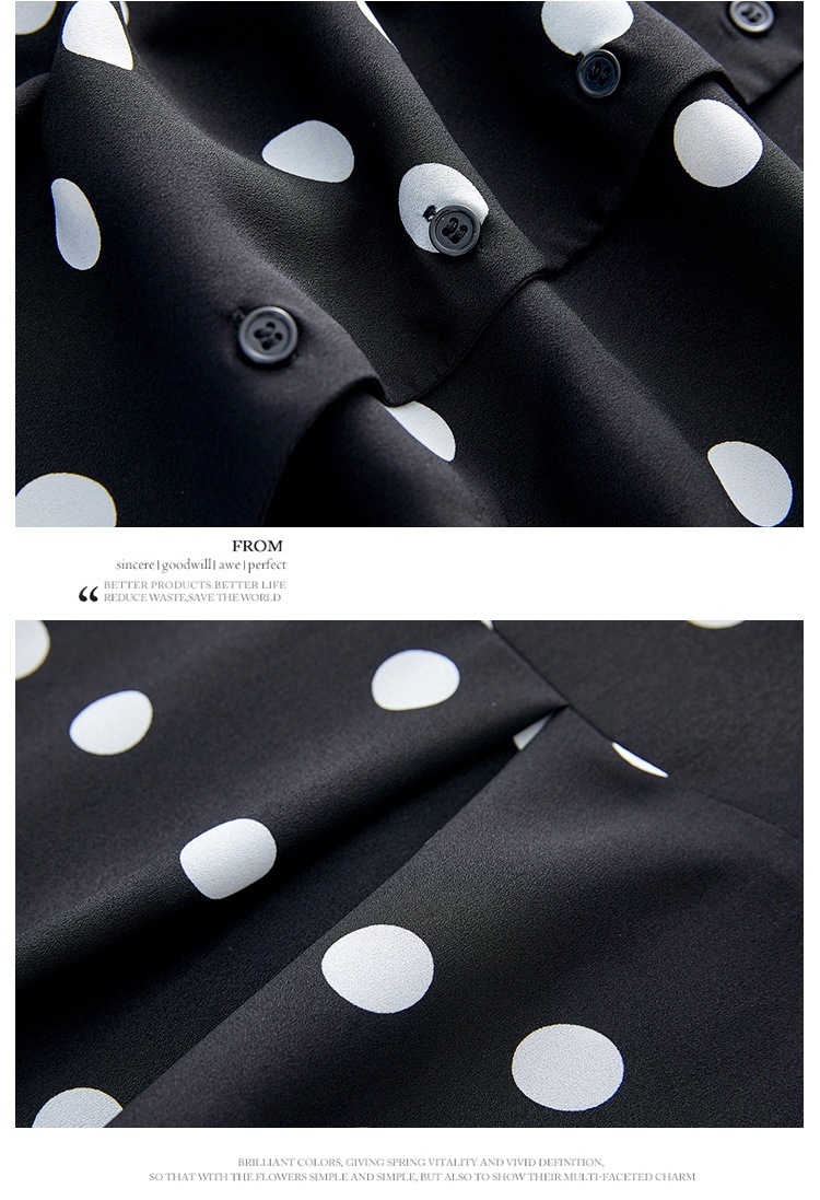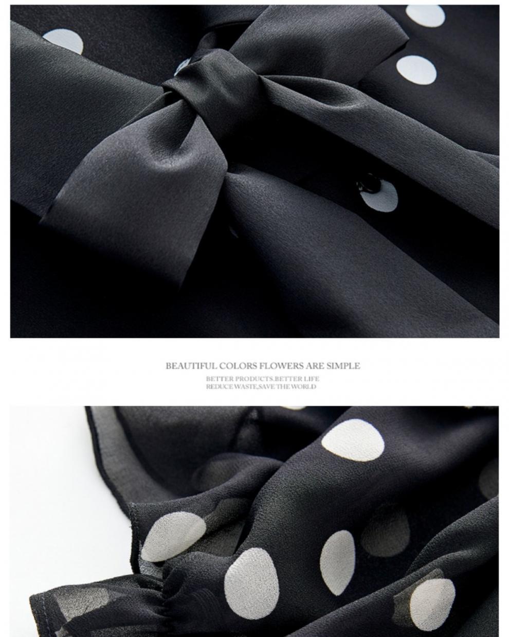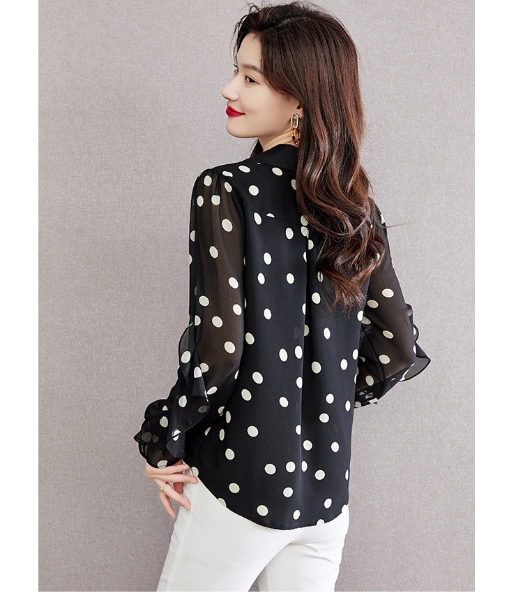 폴카 도트 셔츠 여성용 2023 봄 여름 신상품 세련된 아름다운 배꼽 덮는 쉬폰 셔츠 러플 셔츠 여성용 시크한 스몰 셔츠스토어 가기