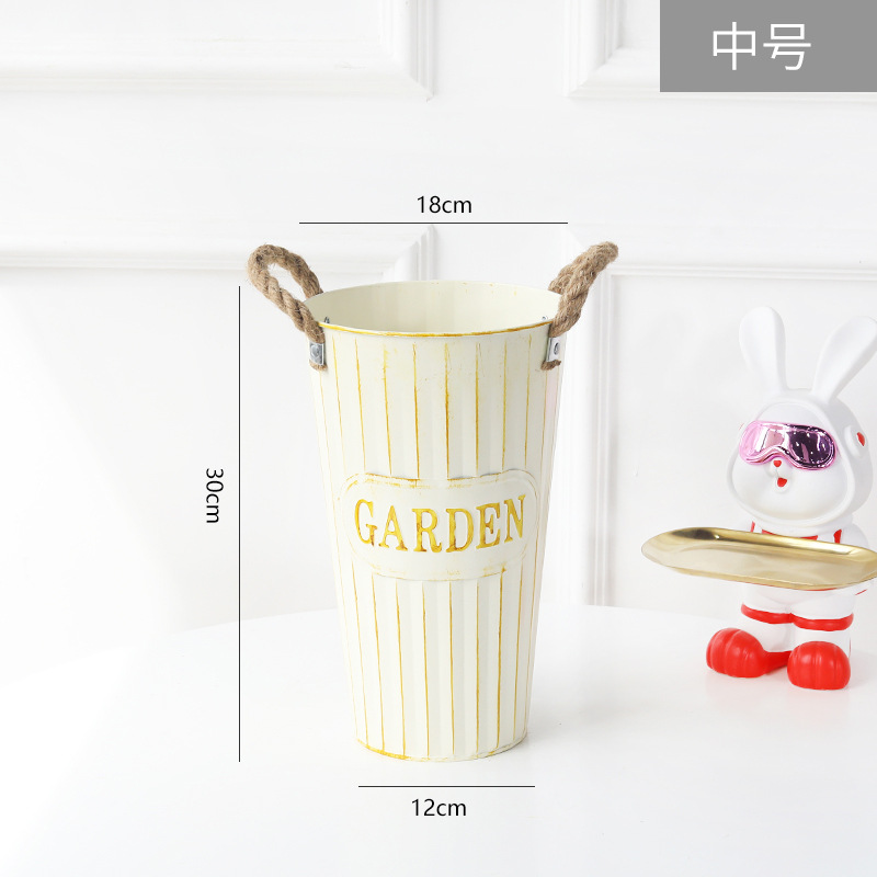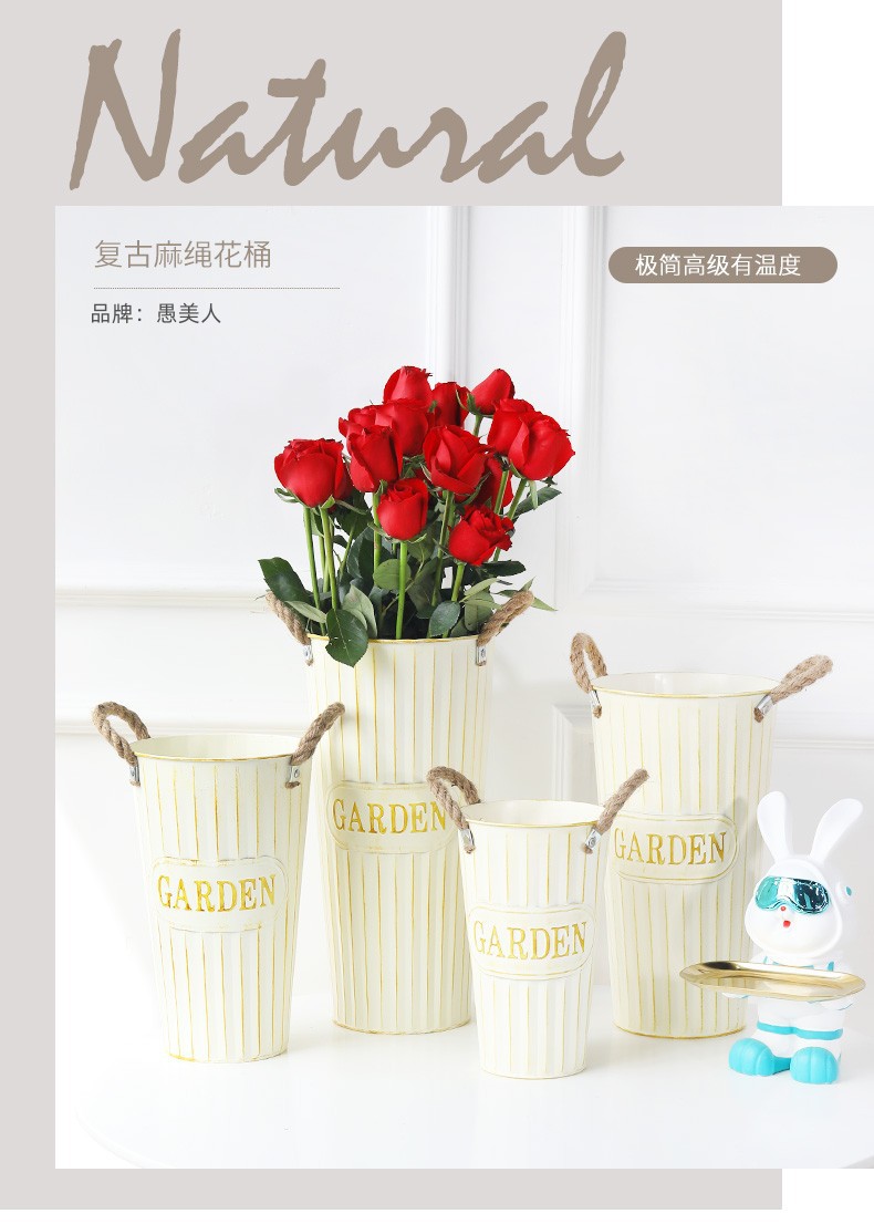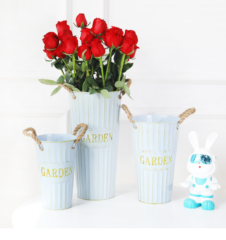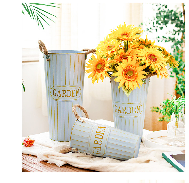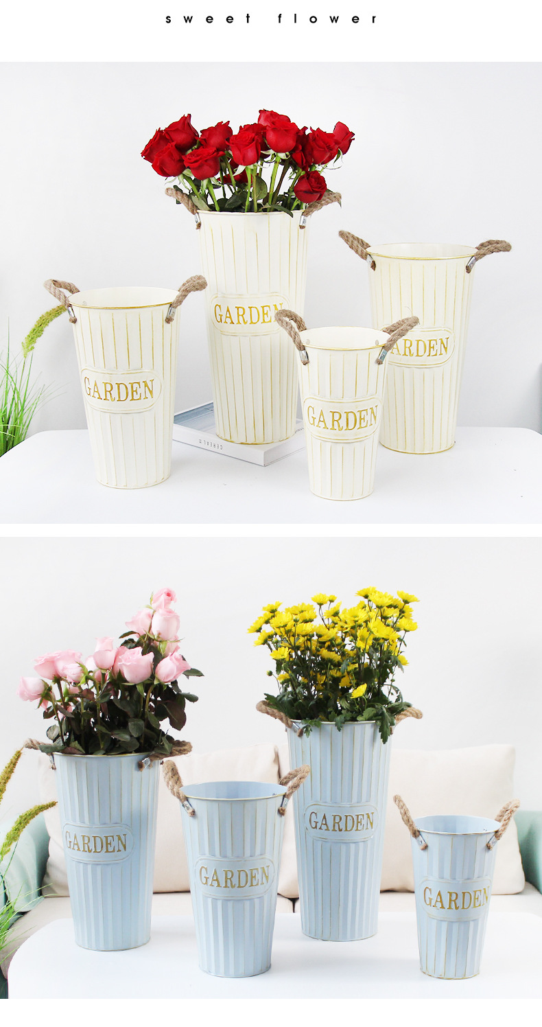 빈티지 화이트 말린 꽃 양동이 꽃 배열 높은 꽃 양동이 꽃 가게 장식 주석 양동이 미국 스타일 꽃 양동이 바닥 꽃병 철 양동이