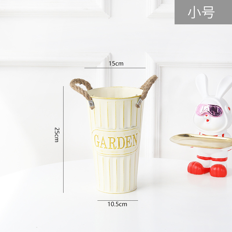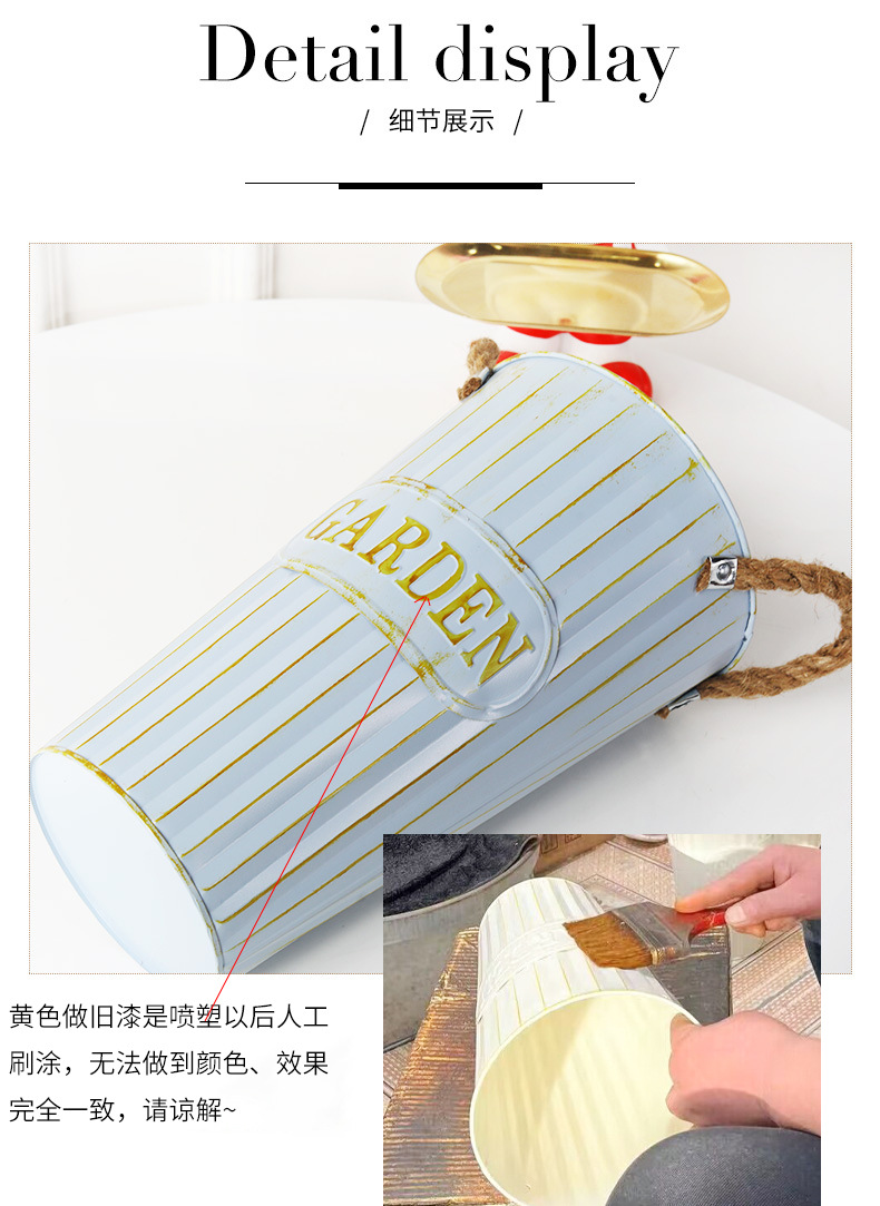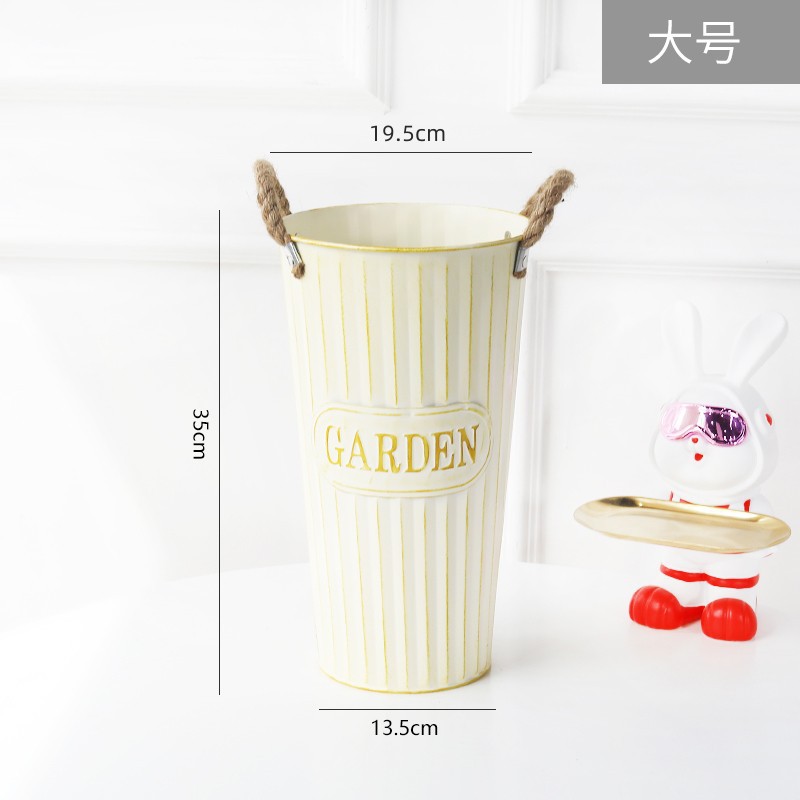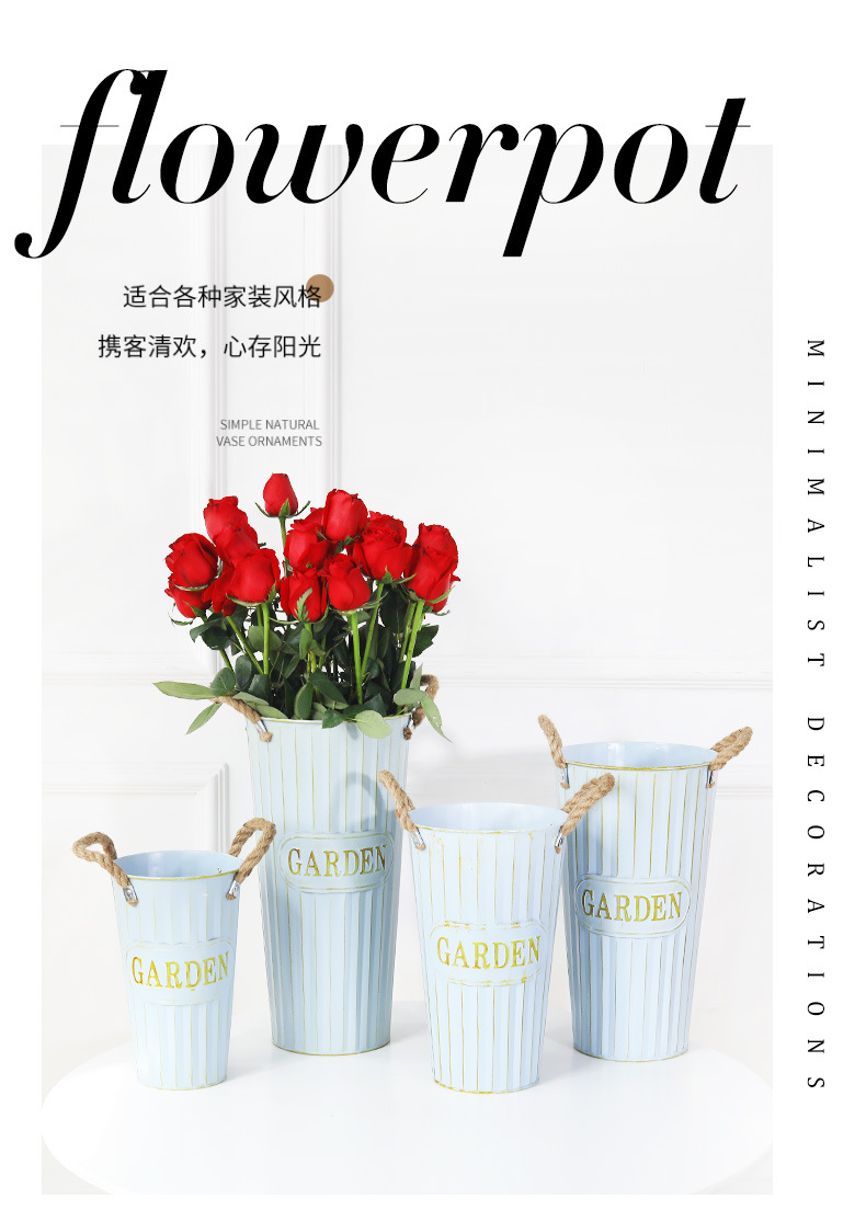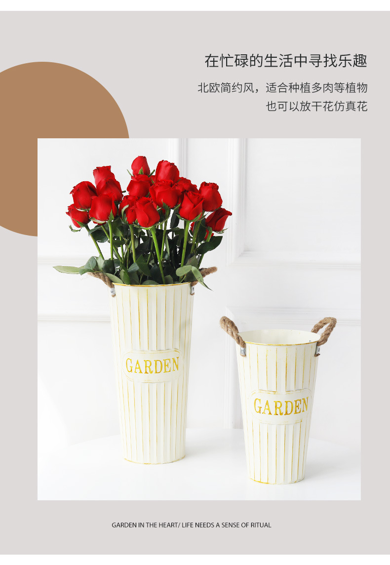 빈티지 화이트 말린 꽃 양동이 꽃 배열 높은 꽃 양동이 꽃 가게 장식 주석 양동이 미국 스타일 꽃 양동이 바닥 꽃병 철 양동이