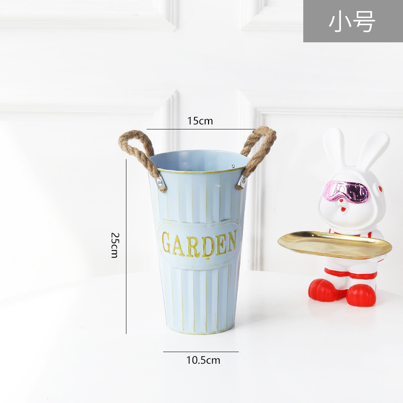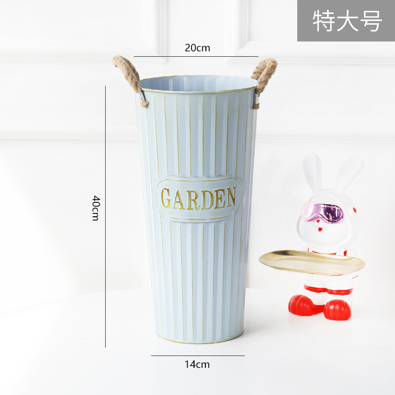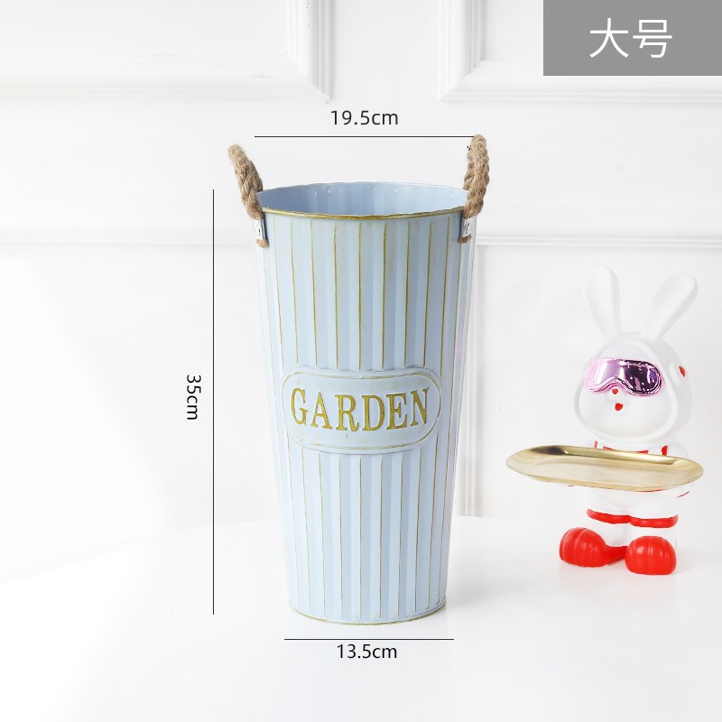 • 레트로 블루 대마 로프 꽃 양동이-초대형 [높이 40cm]