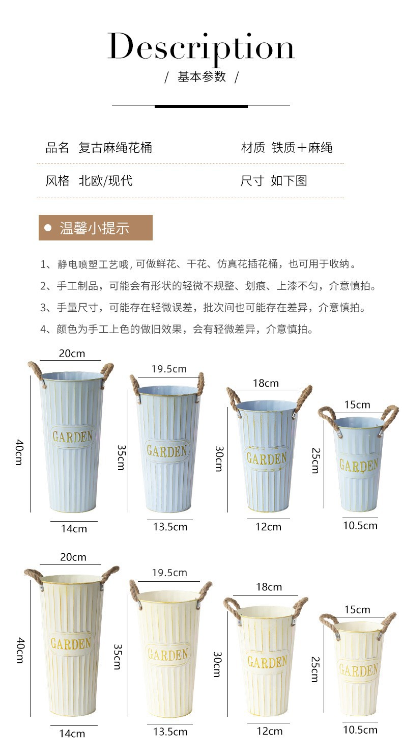 빈티지 화이트 말린 꽃 양동이 꽃 배열 높은 꽃 양동이 꽃 가게 장식 주석 양동이 미국 스타일 꽃 양동이 바닥 꽃병 철 양동이스토어 가기