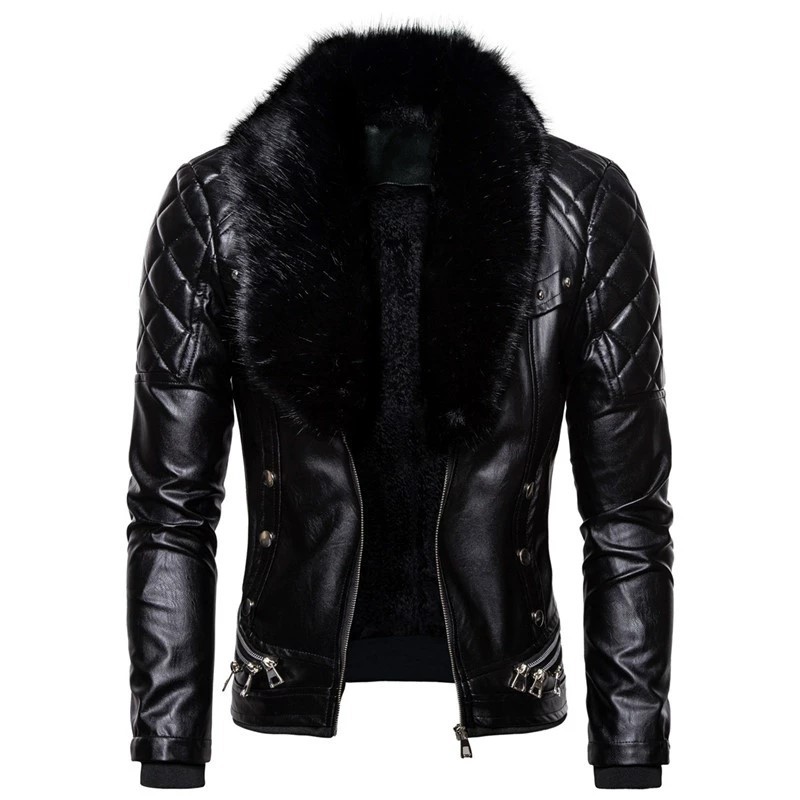 공장 도매 남성 펑크 탈착식 모피 칼라 리벳 면화 두꺼운 방풍 오토바이 가죽 자켓 남성