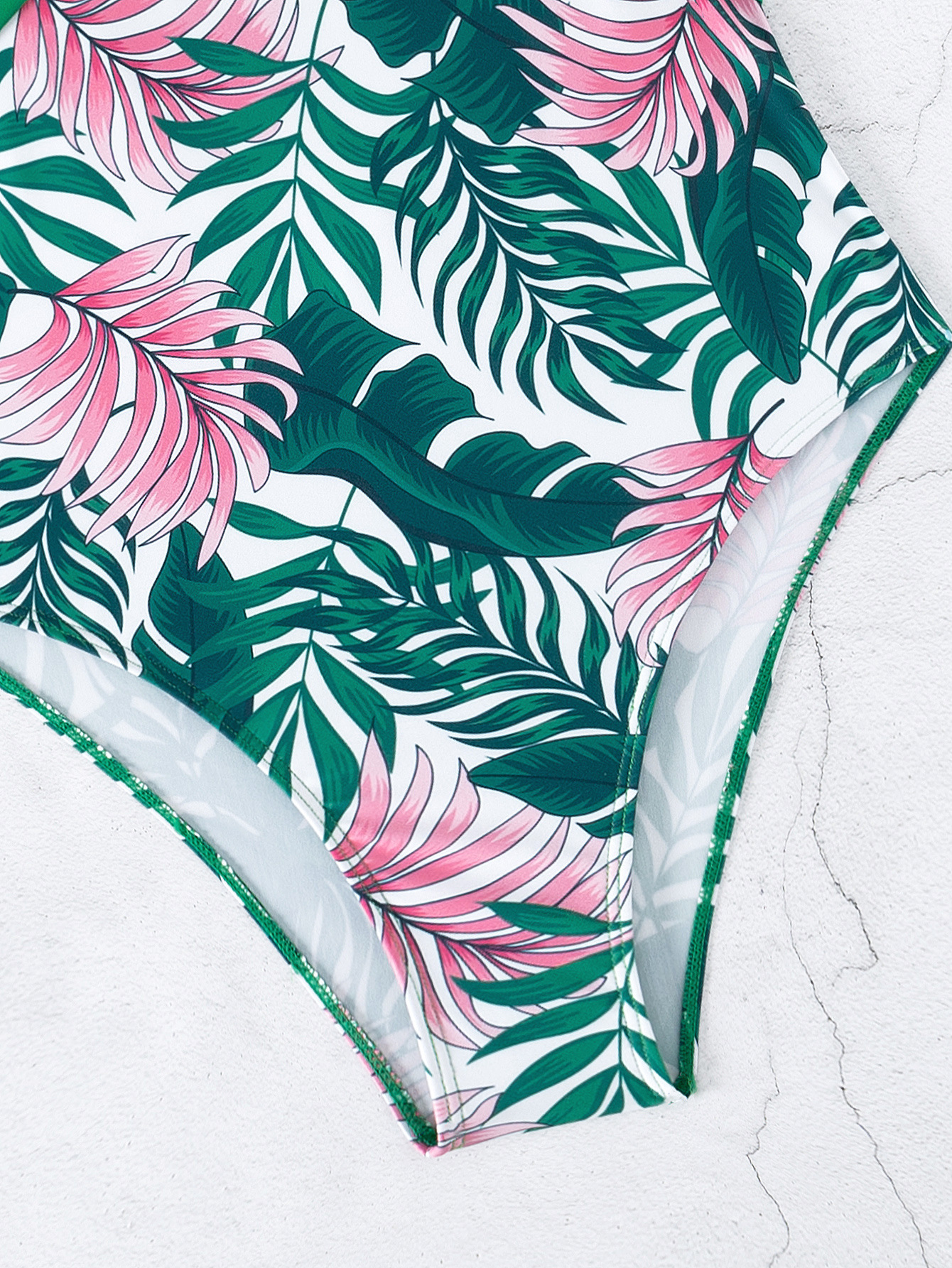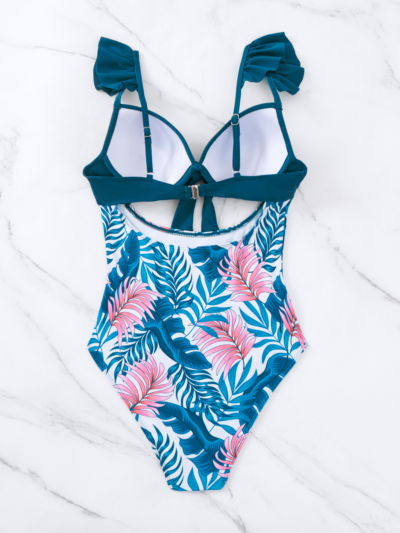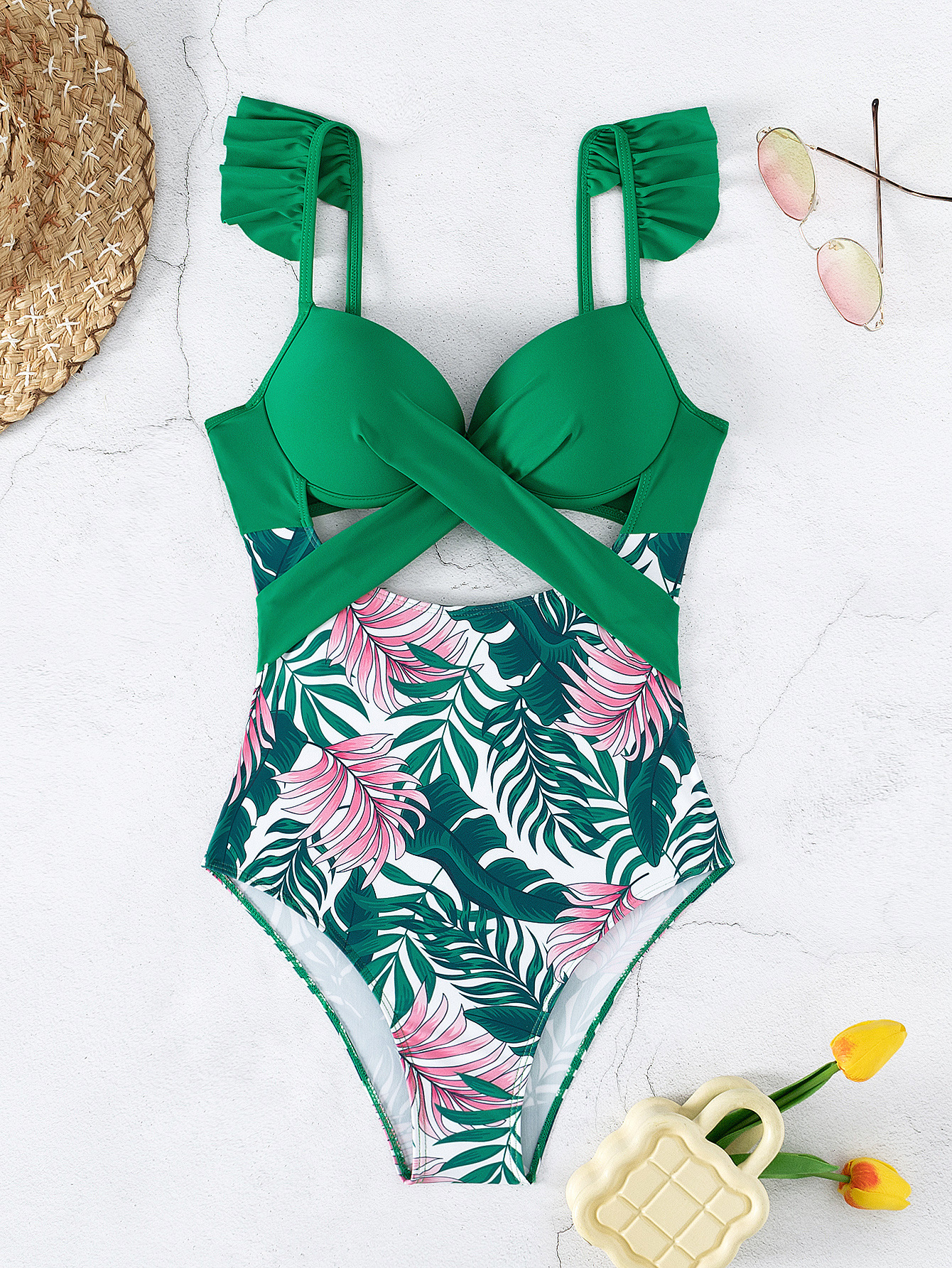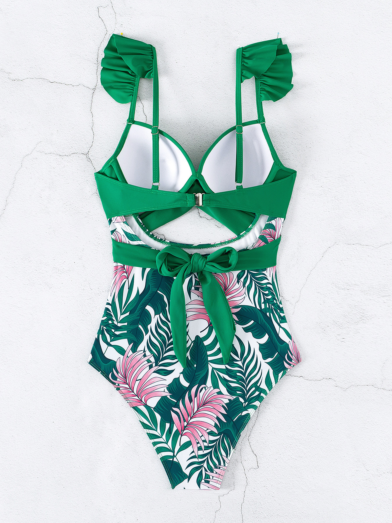 2025 새로운 유럽과 미국의 대외 무역 인쇄 패션 섹시한 비키니 원피스 프릴 레이스 업 백리스 수영복 여성용스토어 가기