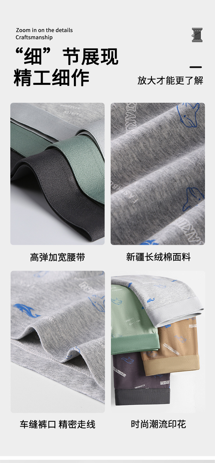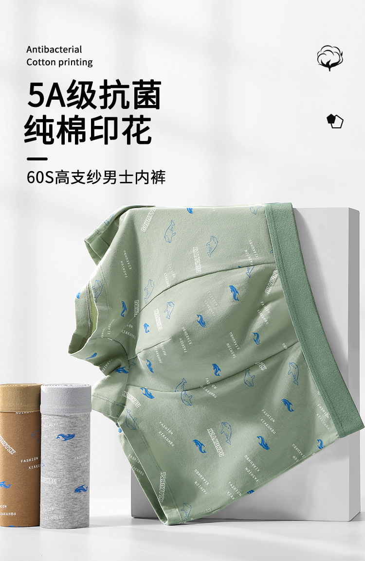 순면 남성용 인쇄 속옷 5A 항균 가랑이 원활한 통기성 여름 얇은 남성용 4 코너 속옷