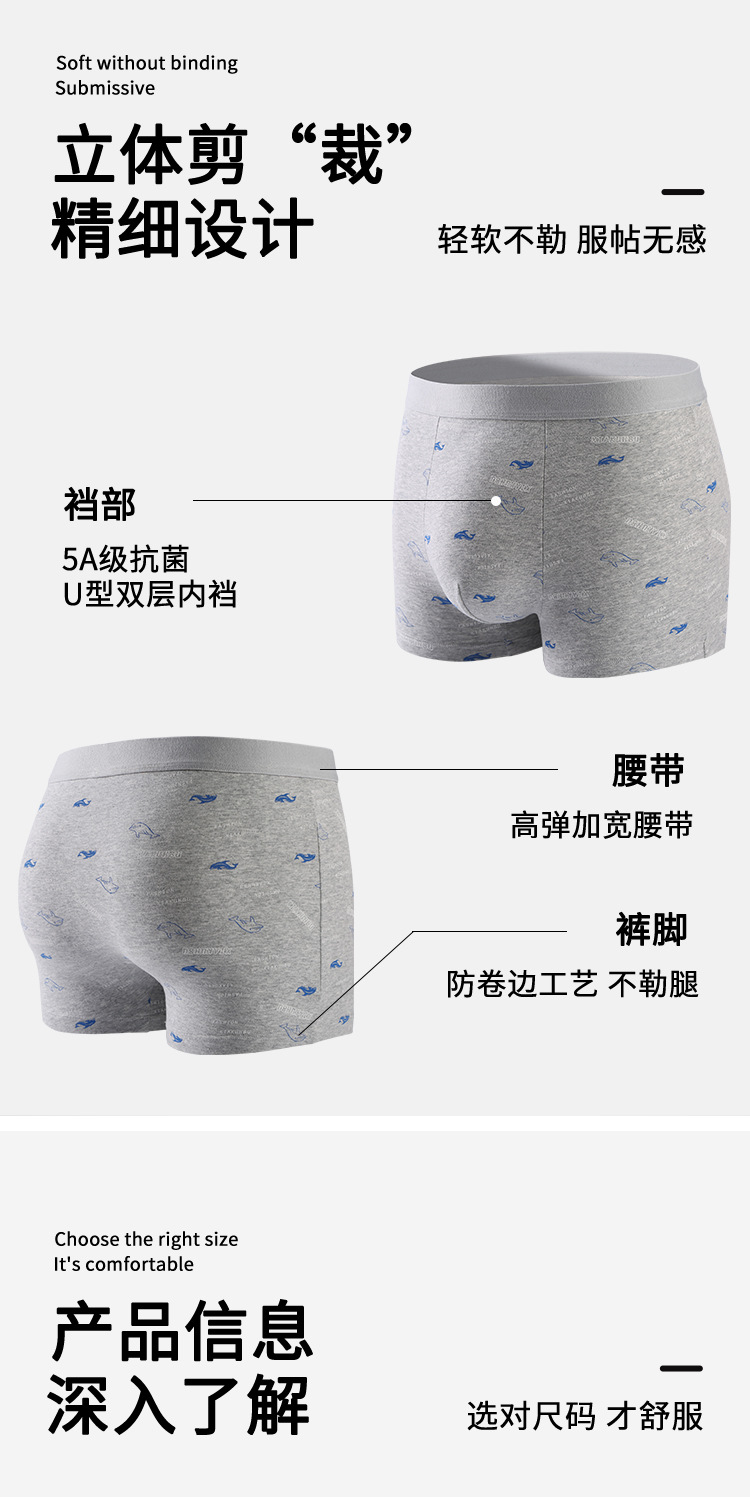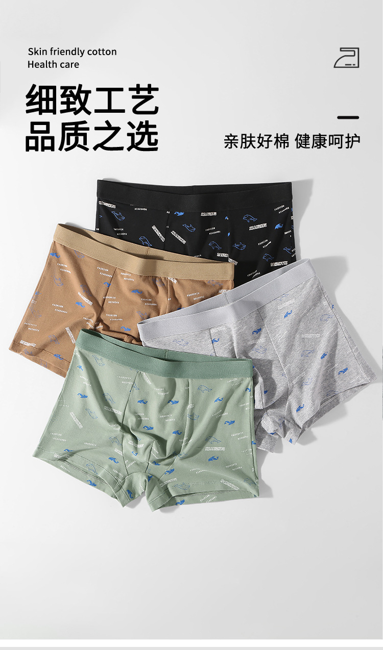 순면 남성용 인쇄 속옷 5A 항균 가랑이 원활한 통기성 여름 얇은 남성용 4 코너 속옷스토어 가기