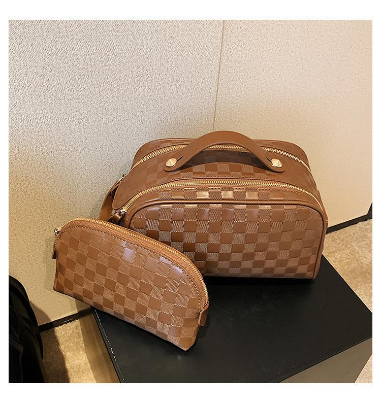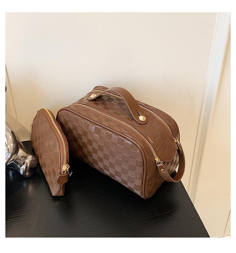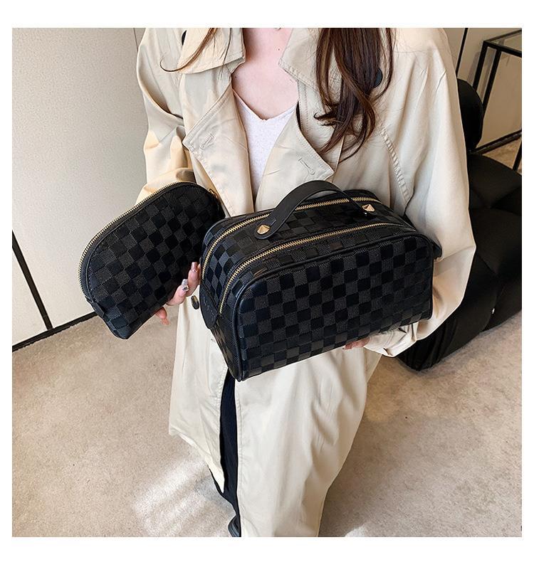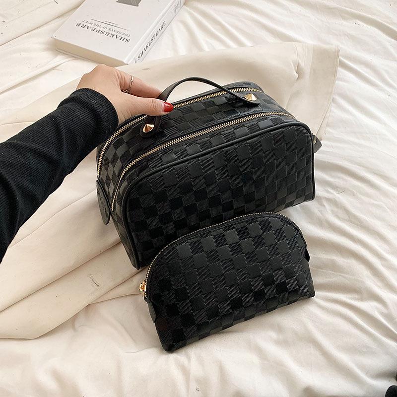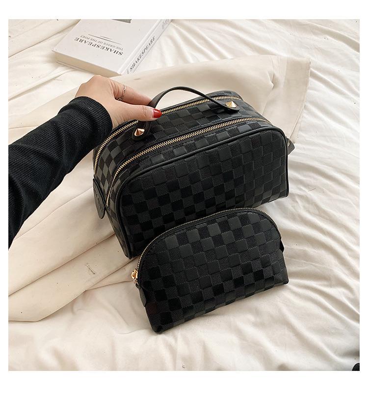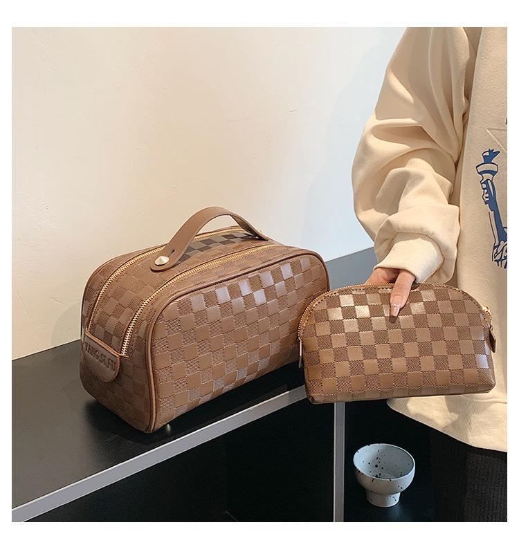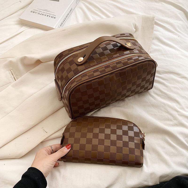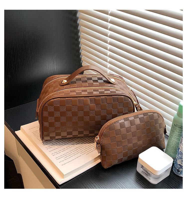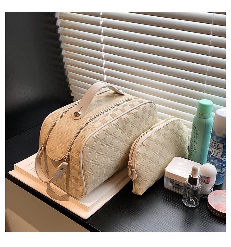 화장품 가방 2023 새로운 대용량 스타일 화장품 보관 가방 고급 감각 PU 휴대용 여행 세척 가방스토어 가기