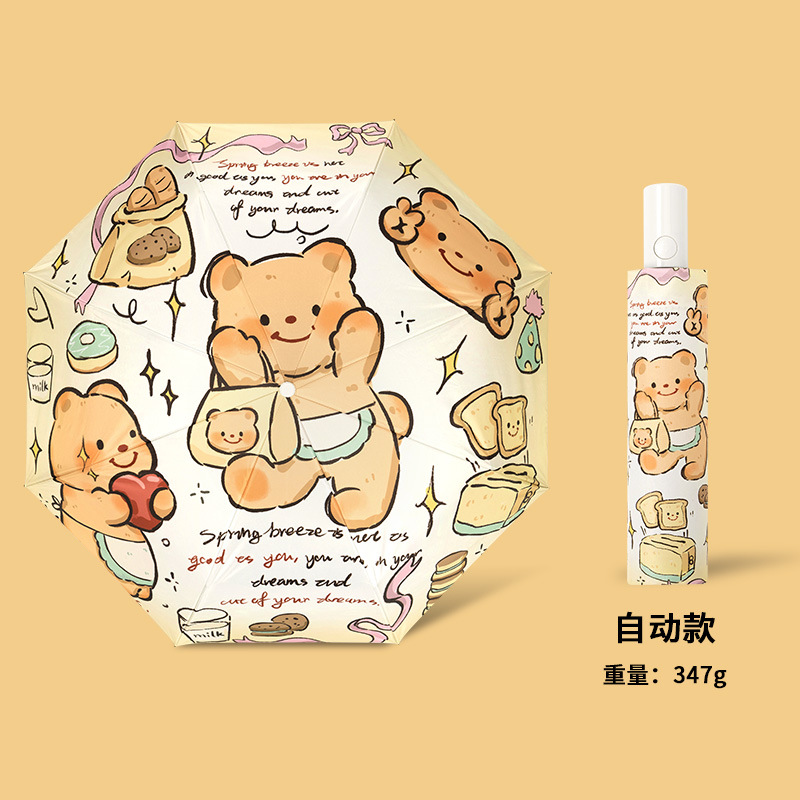 미국 복고풍 고급 여성의 맑고 비오는 이중 사용 만화 개 접는 학생 자동 접는 태양 우산스토어 가기