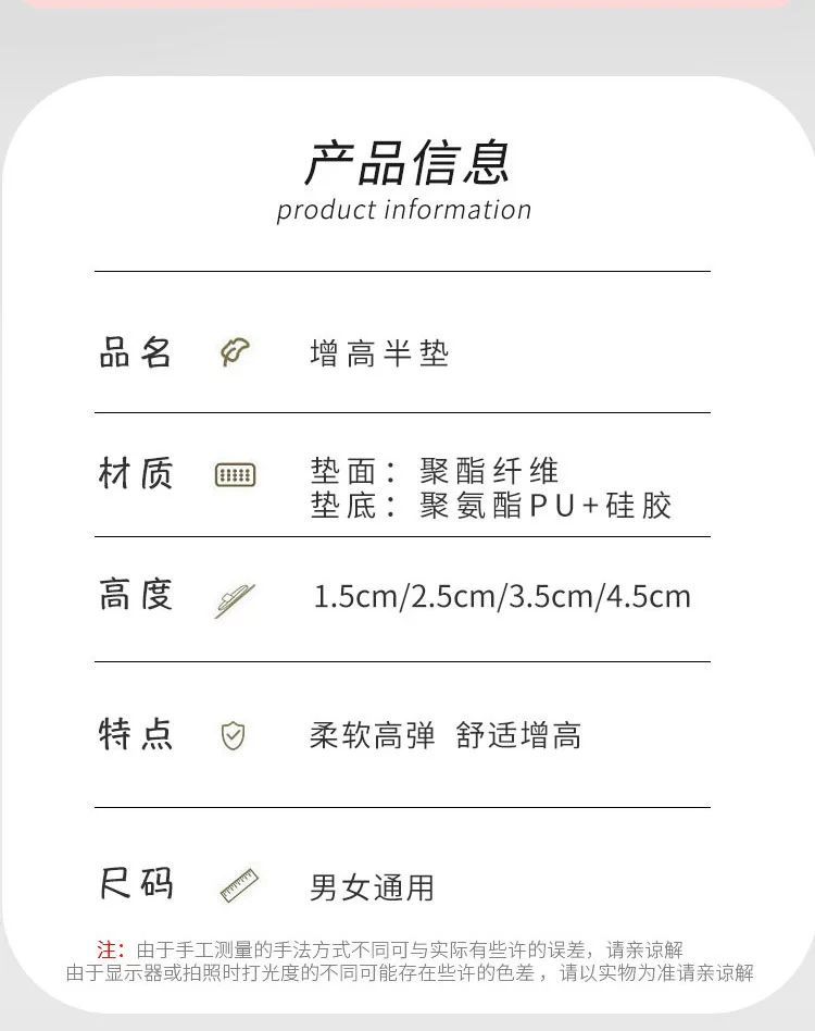 남성과 여성을위한 편안한 PU 실리콘 높이 증가 깔창 보이지 않는 내부 높이 증가 힐 하프 패드 붕괴 방지 여름에 피곤하지 않은 발스토어 가기