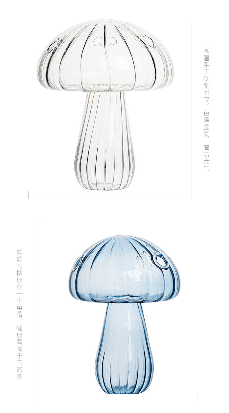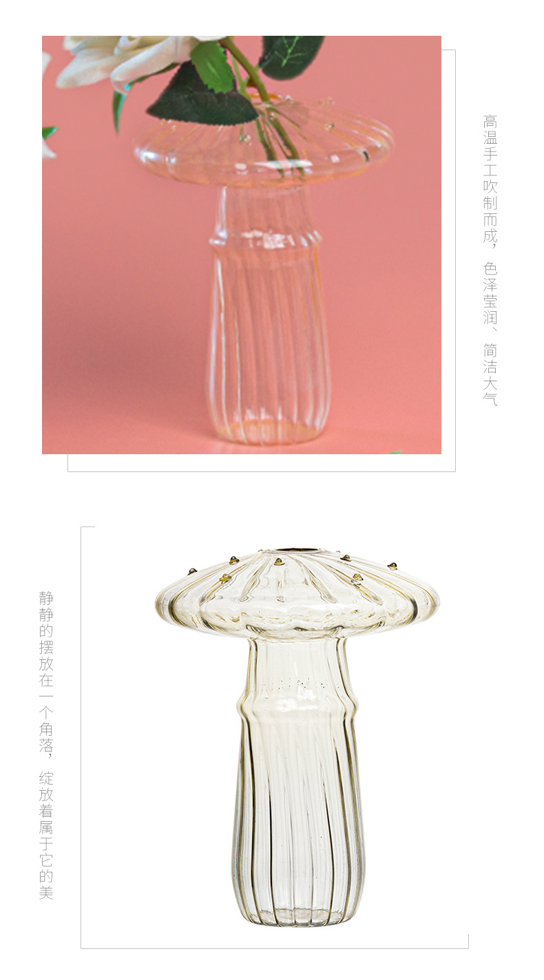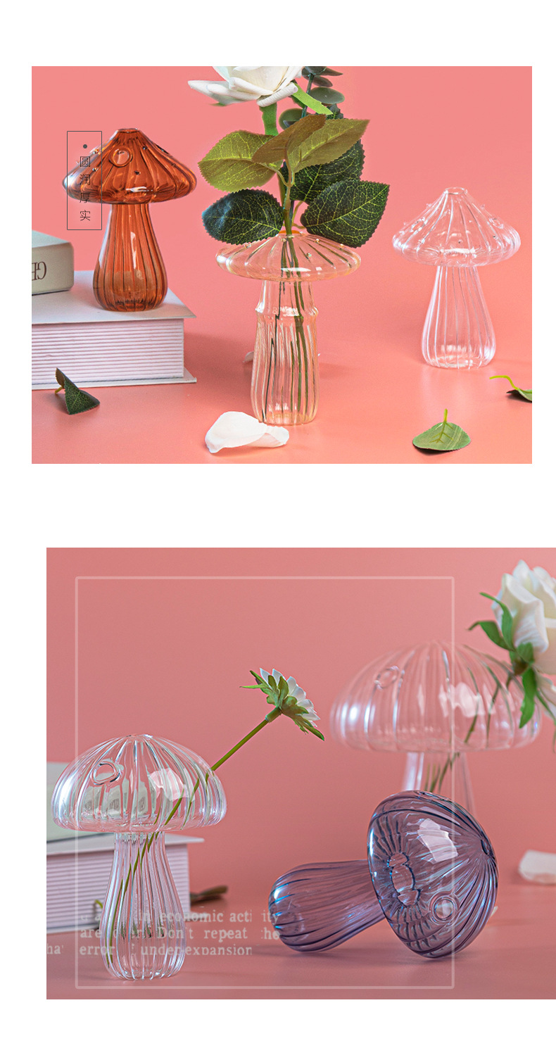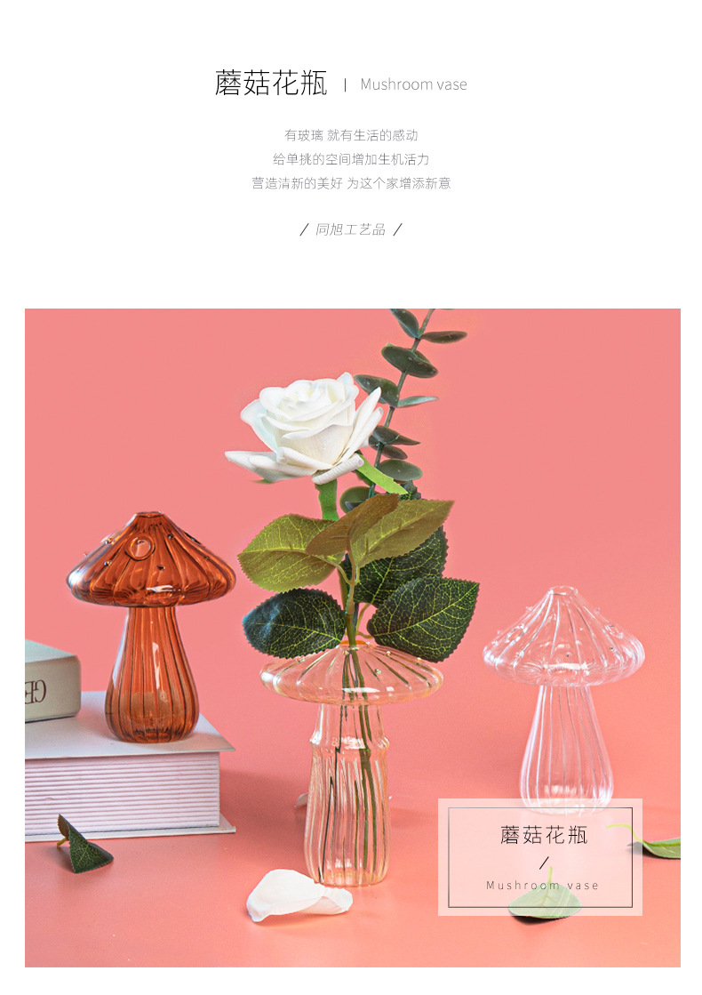 버섯 꽃병 ins 풍수 크리 에이 티브 유리 장식품 녹색 식물 꽃꽂이 장식 아로마 테라피 병 하이 엔드 용품