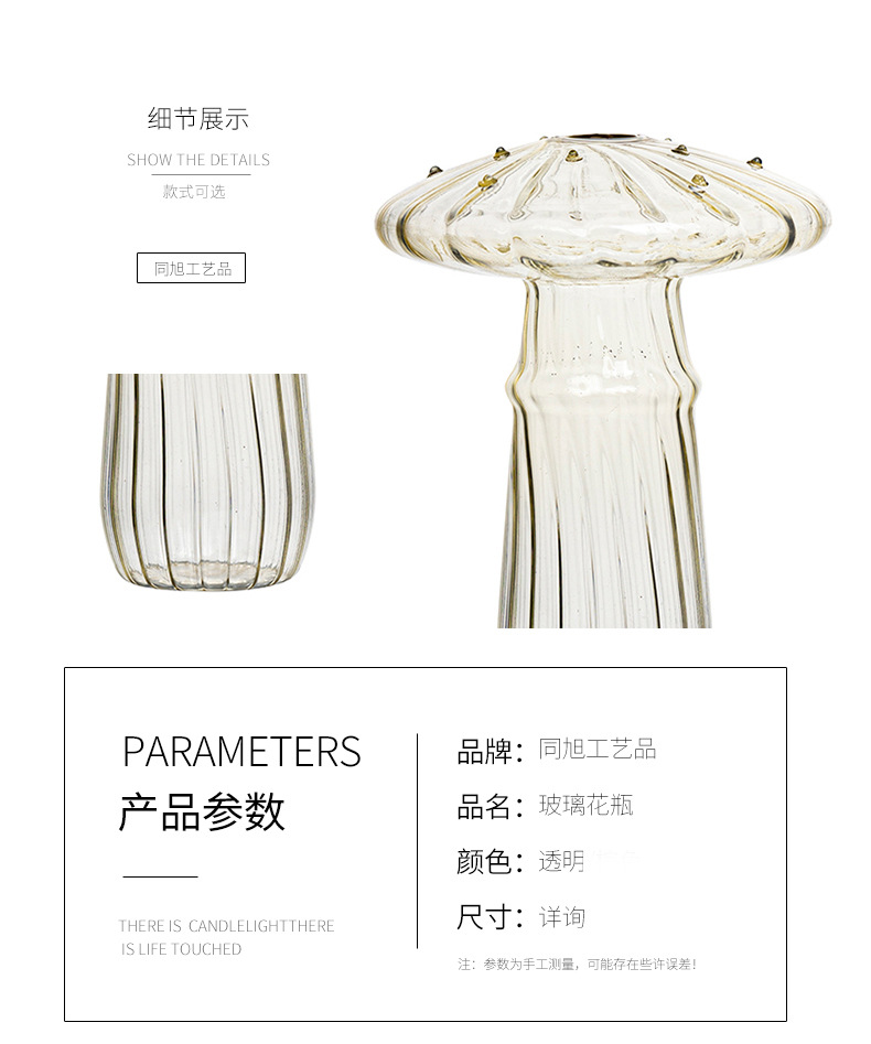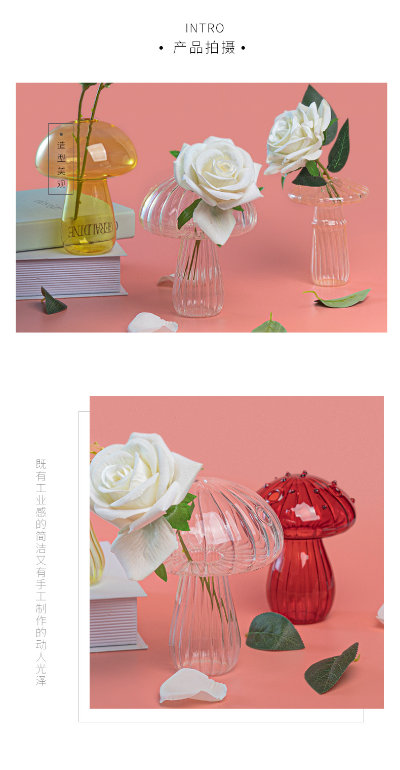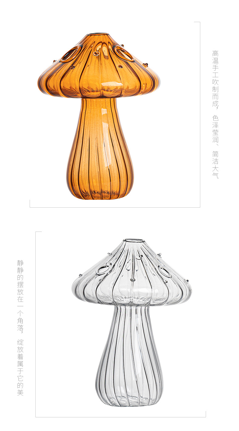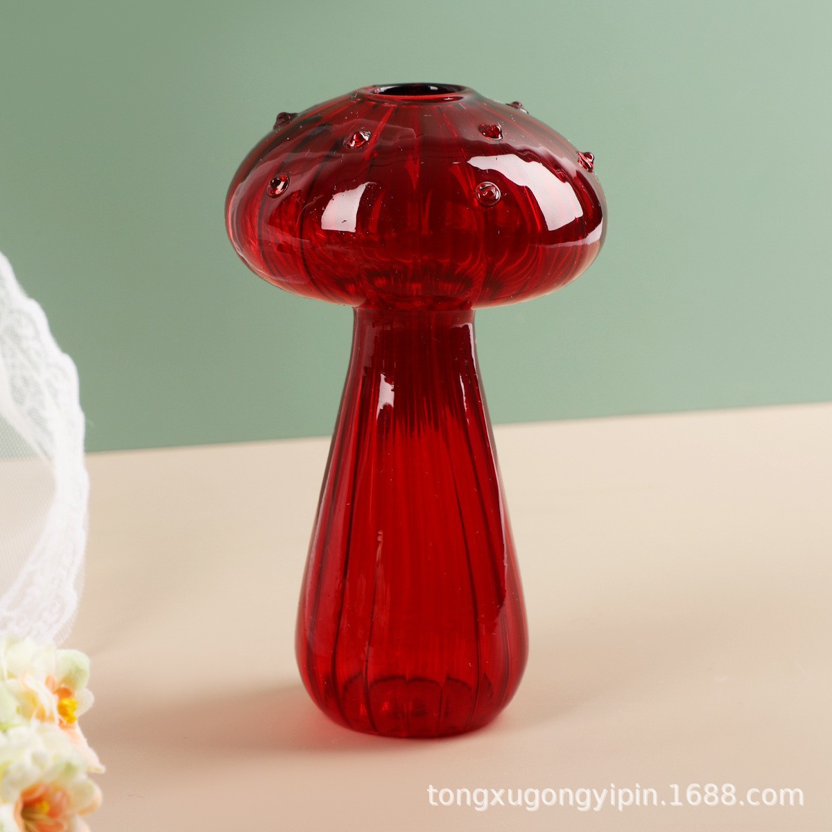 버섯 꽃병 ins 풍수 크리 에이 티브 유리 장식품 녹색 식물 꽃꽂이 장식 아로마 테라피 병 하이 엔드 용품