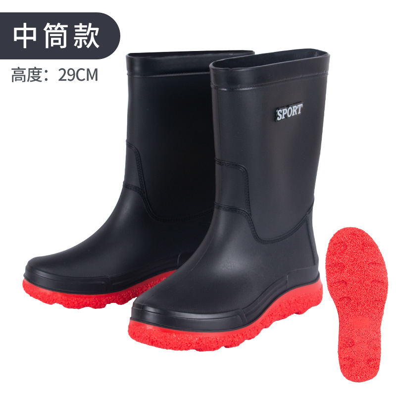 공장 도매 레인 부츠 새로운 패션 부츠 남성용 레인 부츠 튜브 미끄럼 방지 내마모성 패딩 바닥 고무 부츠 노동 보호 레인 부츠스토어 가기