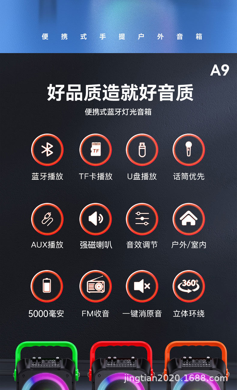 Xia Xin A9 스퀘어 댄스 오디오 야외 대용량 무선 블루투스 휴대용 스피커 K 노래 (마이크 서브 우퍼 포함)