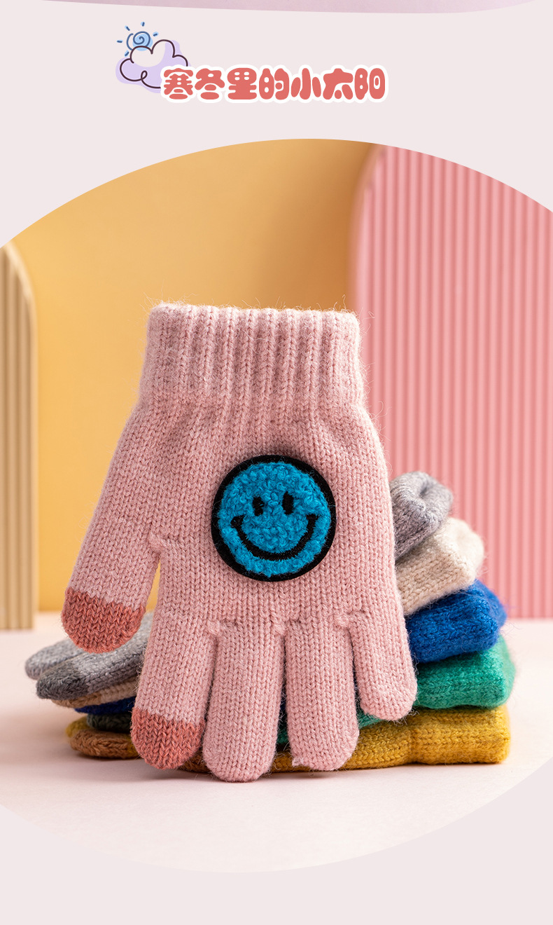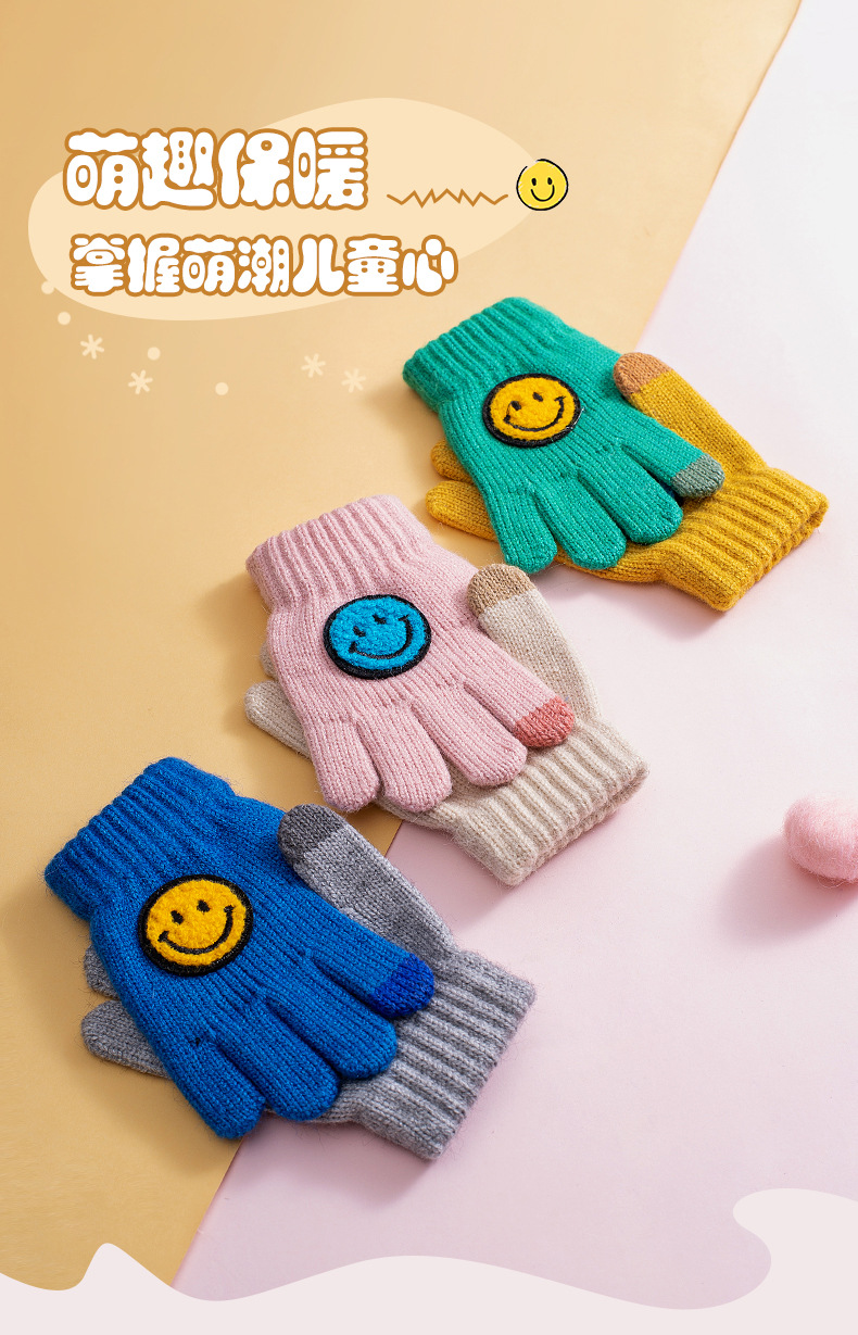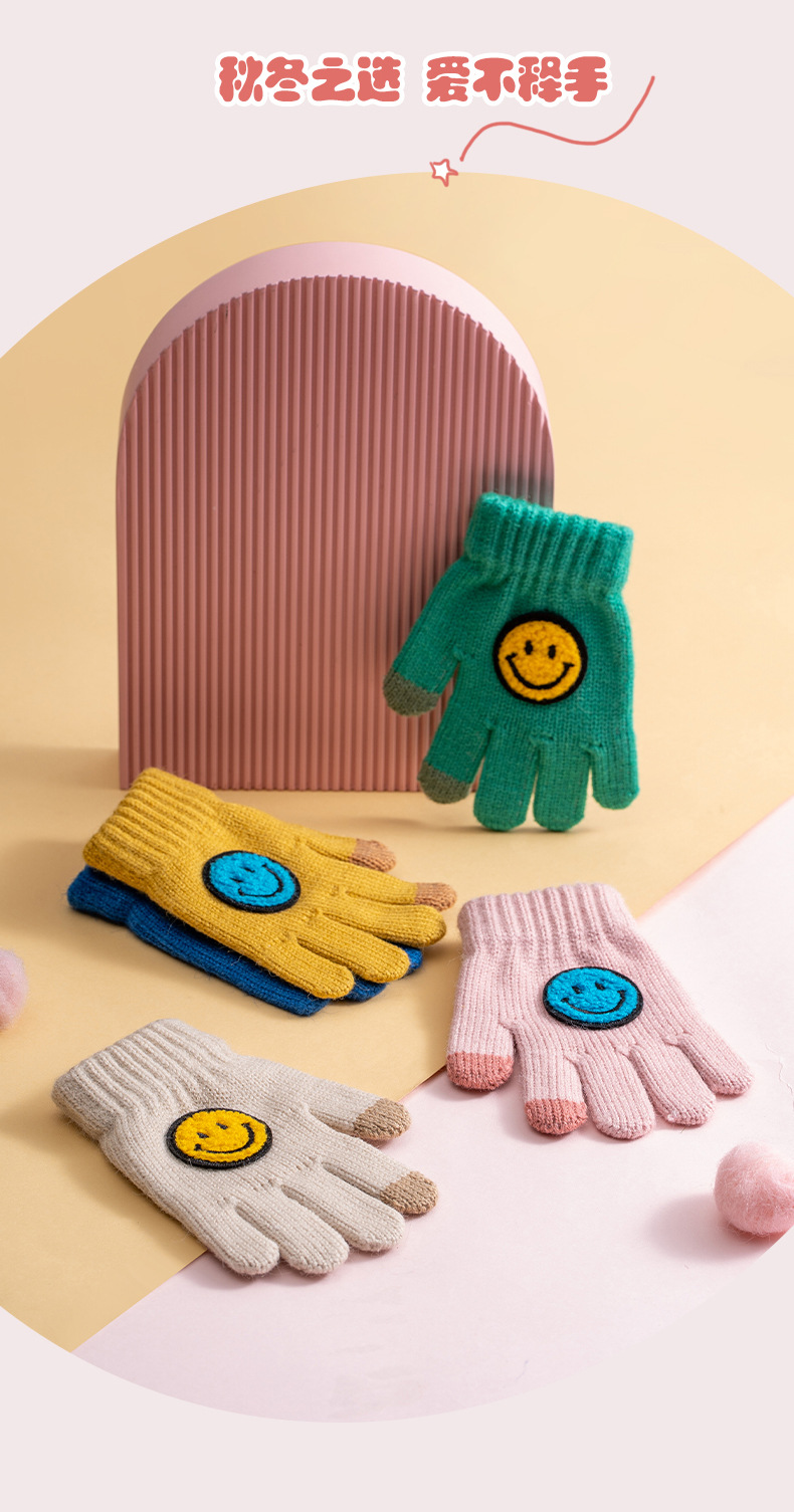 가을과 겨울 어린이 장갑 소녀 방한 소년 따뜻한 스마일 다섯 손가락 아기 니트 귀여운 양모 장갑 유행스토어 가기