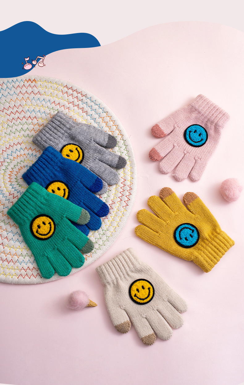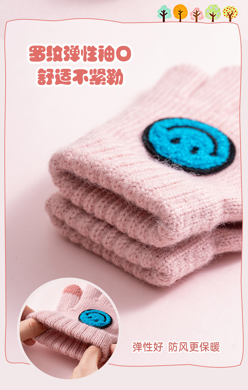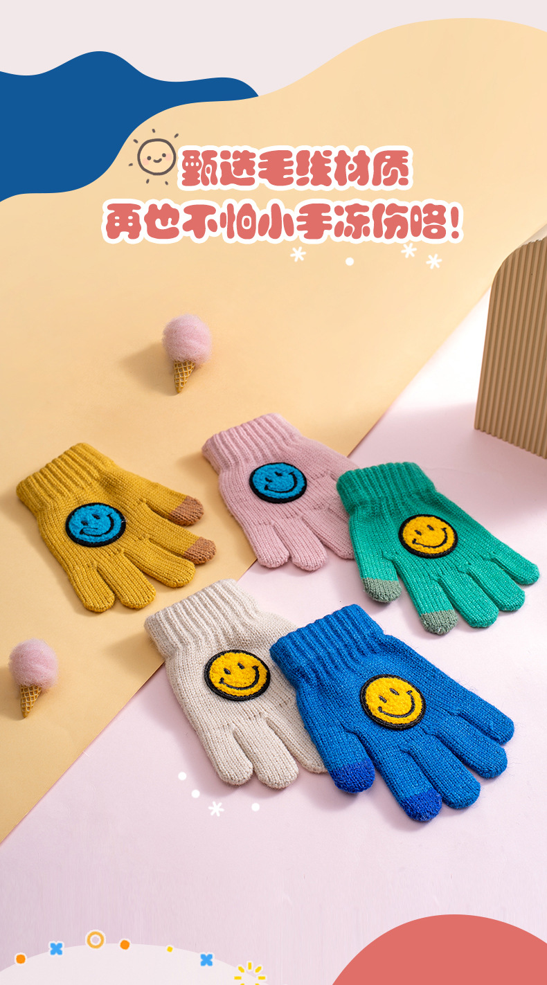 가을과 겨울 어린이 장갑 소녀 방한 소년 따뜻한 스마일 다섯 손가락 아기 니트 귀여운 양모 장갑 유행스토어 가기
