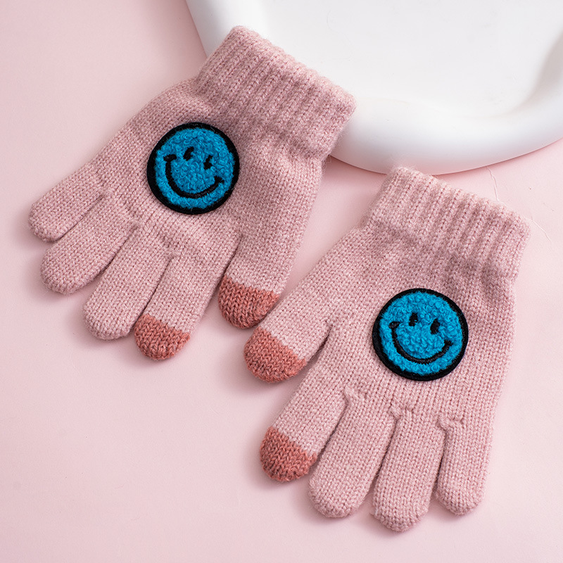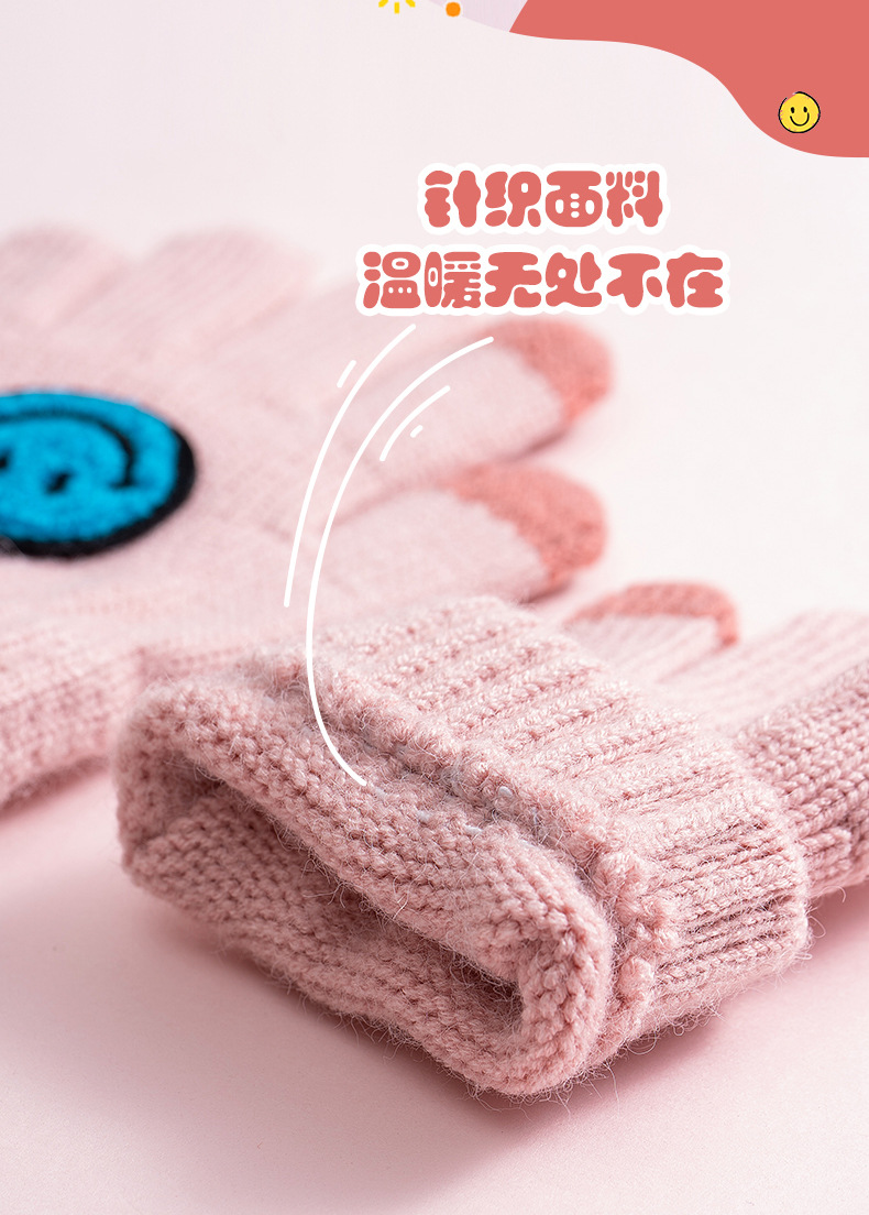 • [핑크] (웃는 얼굴 천 스티커) 아이들의 귀여운 장갑