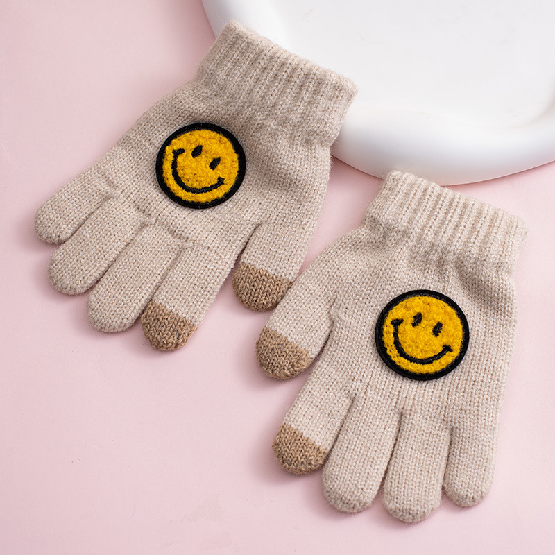 • [카키] (웃는 얼굴 천 스티커) 아이들의 귀여운 장갑