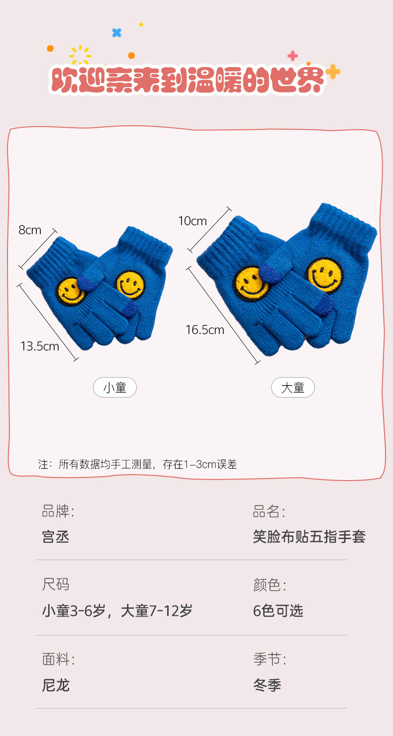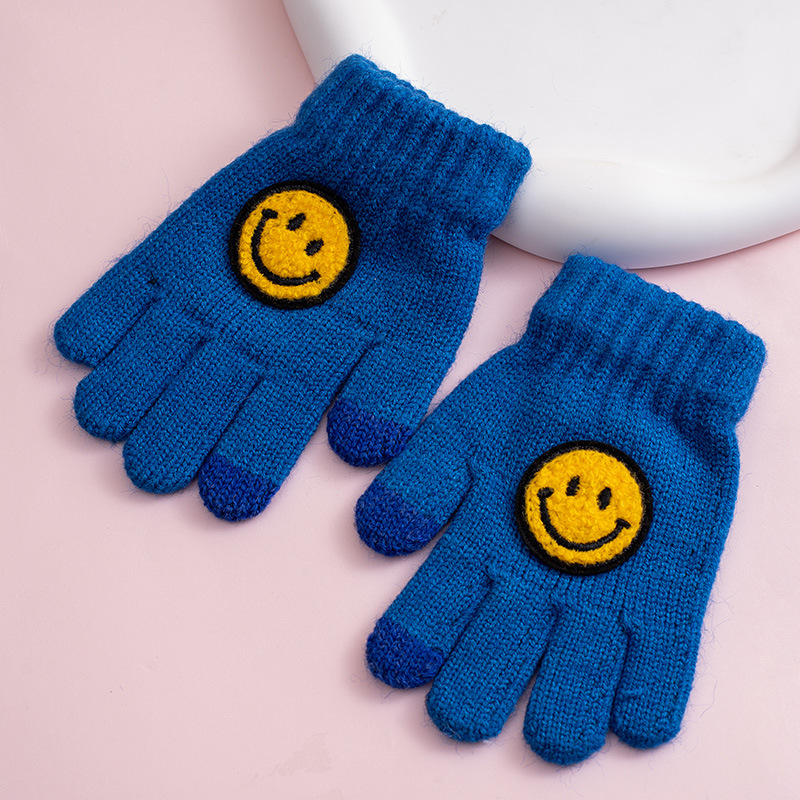 • [다크 블루] (웃는 얼굴 천 스티커) 아이들의 귀여운 장갑